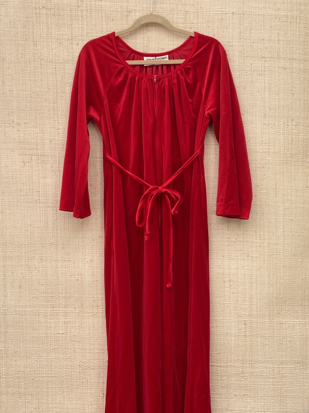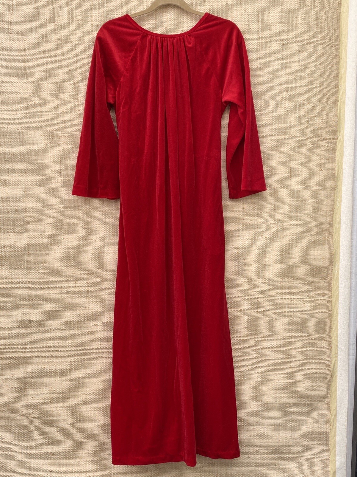 как выглядит Vintage 60s David Brown Kaftan S Red Maxi Velour Mrs Roper Hostess Holiday фото