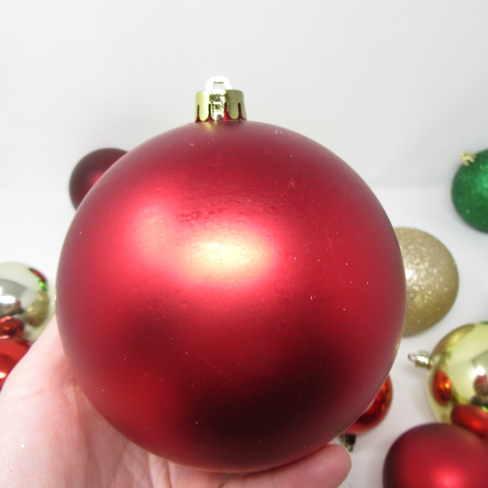 Shatterproof Christmas Ornament Lot of 30 Glitter Faceted Red Gold Green Silver