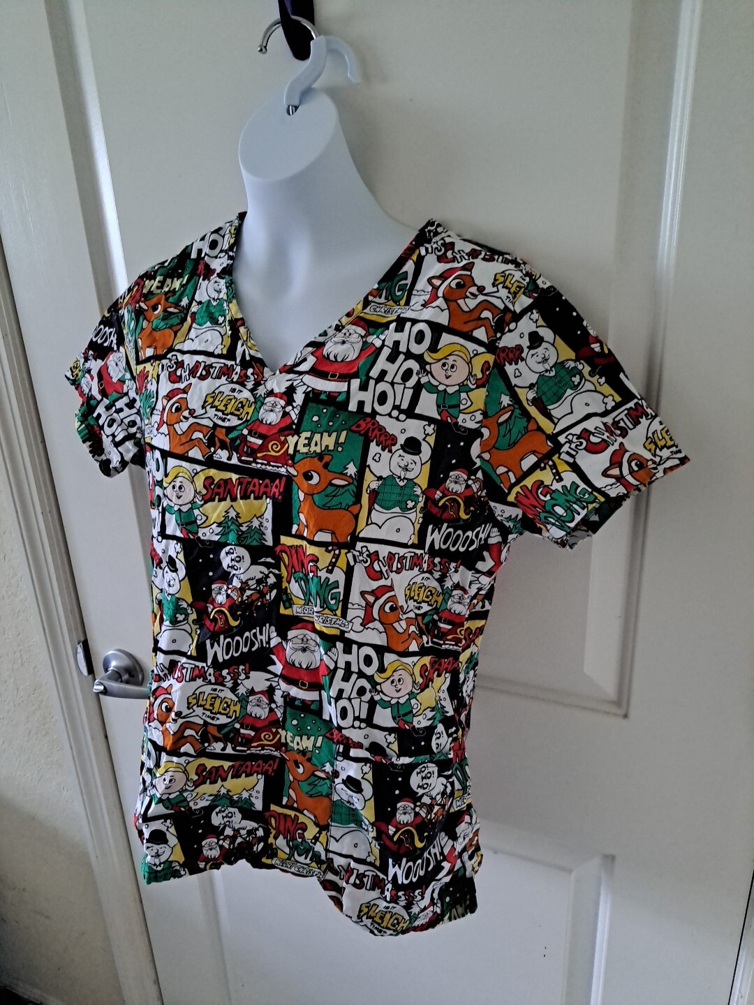 Rudolph The Red Nosed Reindeer Scrub Top Womens Sz Medium Christmas V Neck