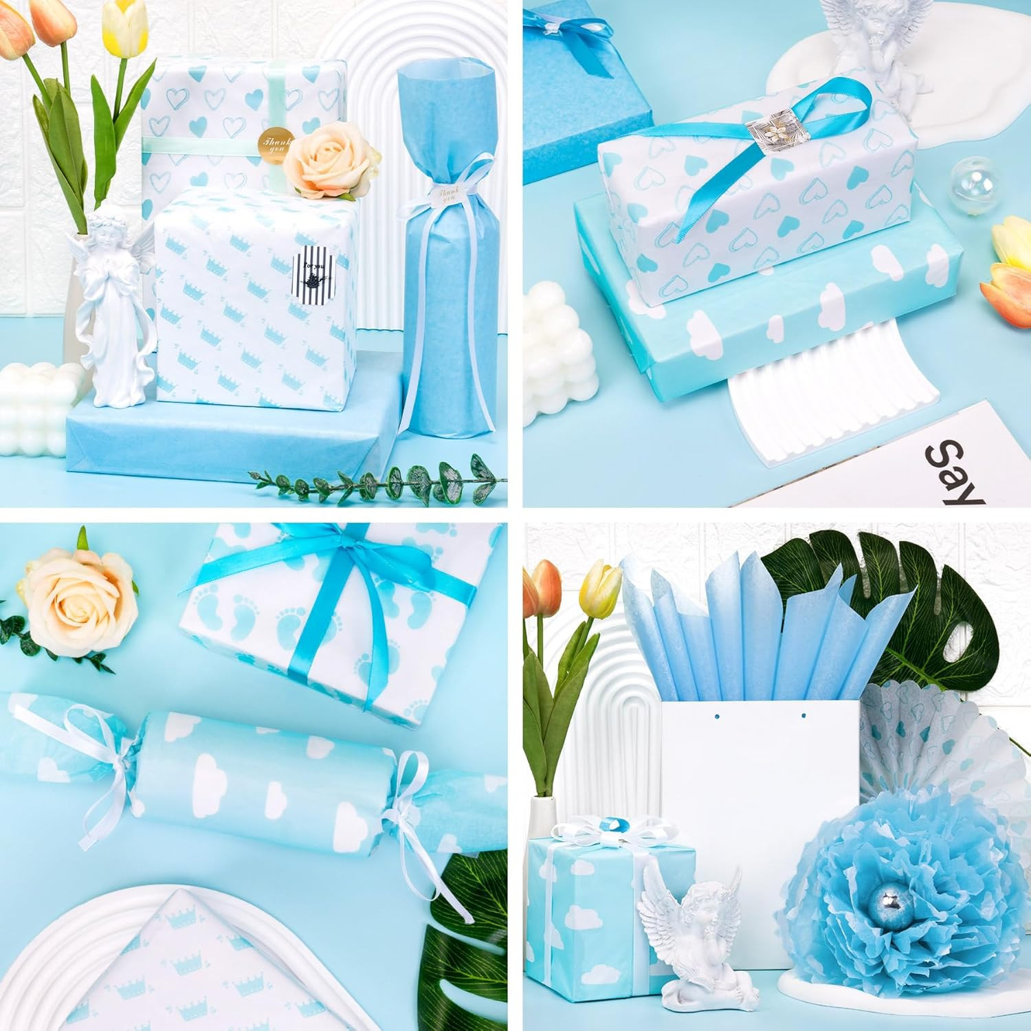Tissue Paper Sheets, 50 Pcs Baby Feet Print Blue Tissue Paper for Wrapping Gifts