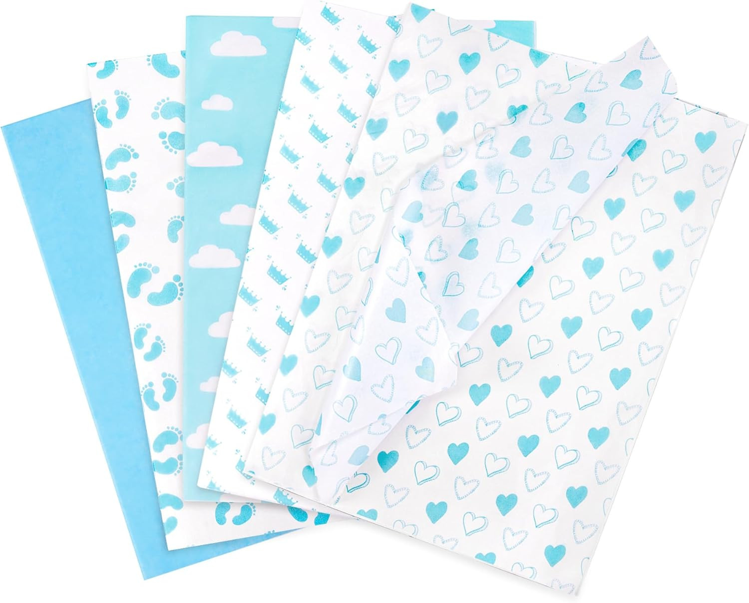 как выглядит Tissue Paper Sheets, 50 Pcs Baby Feet Print Blue Tissue Paper for Wrapping Gifts фото