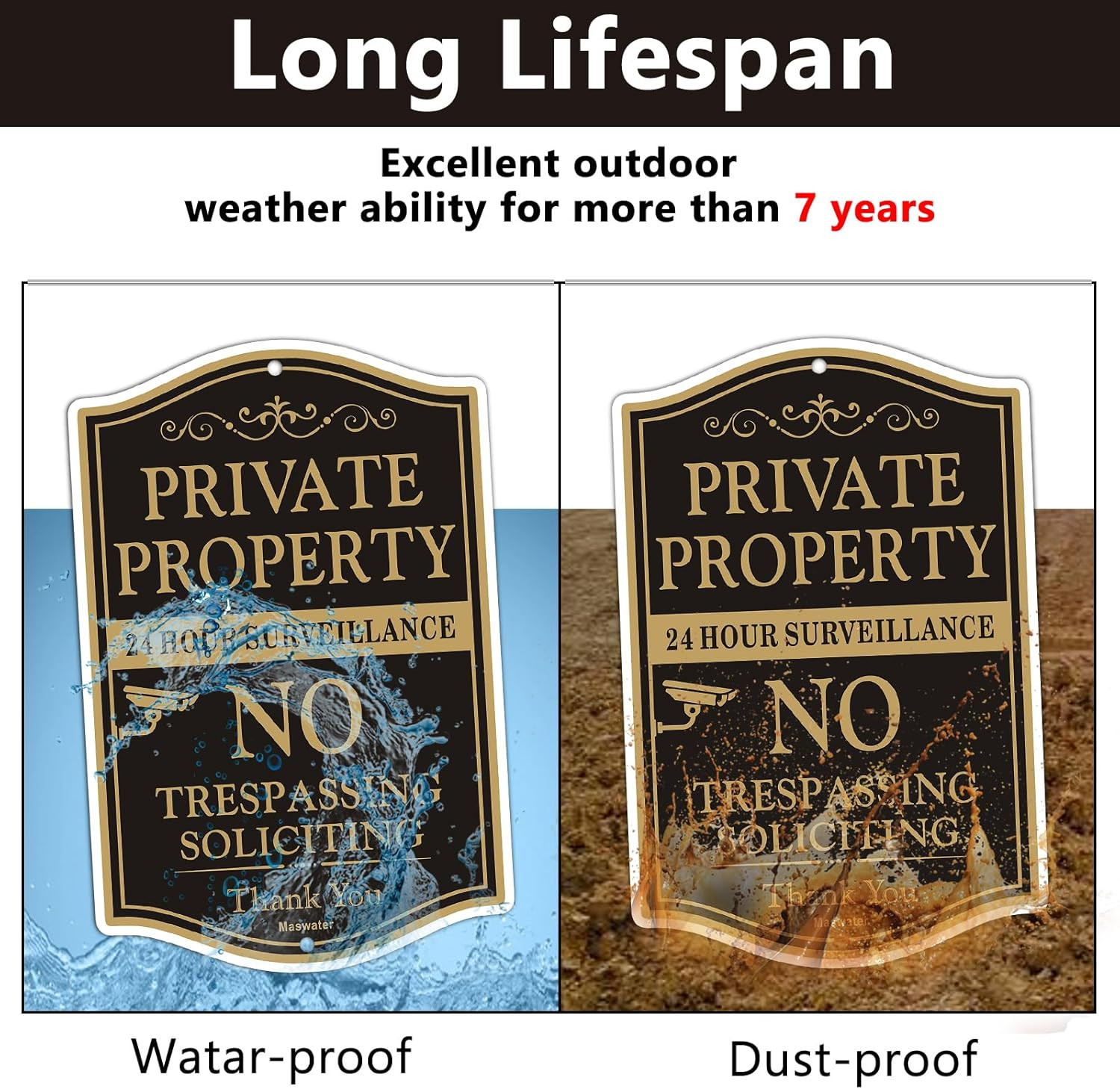 Large Private Property No Trespassing Sign, 2-Pack 12 X 18 No Soliciting 24 Ho