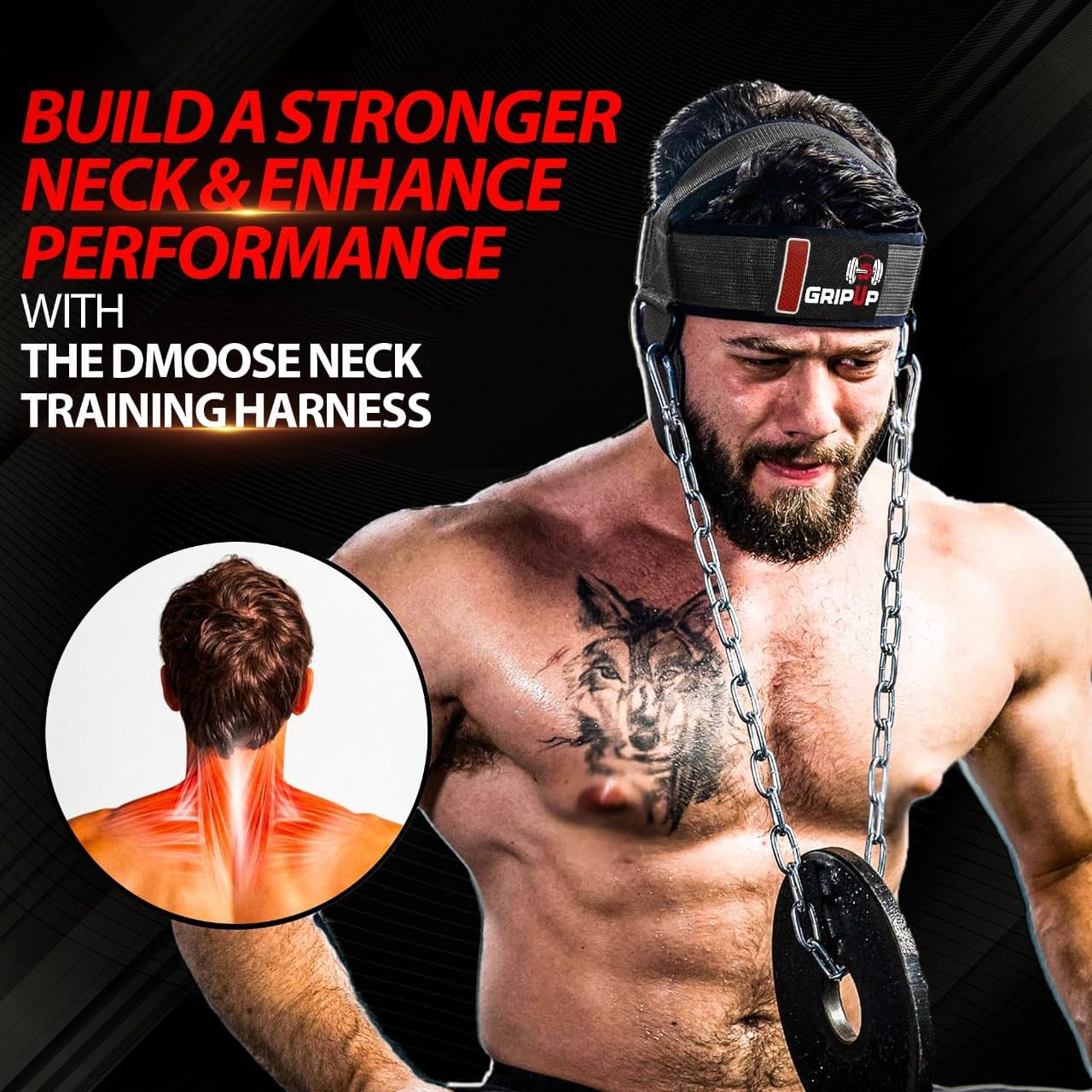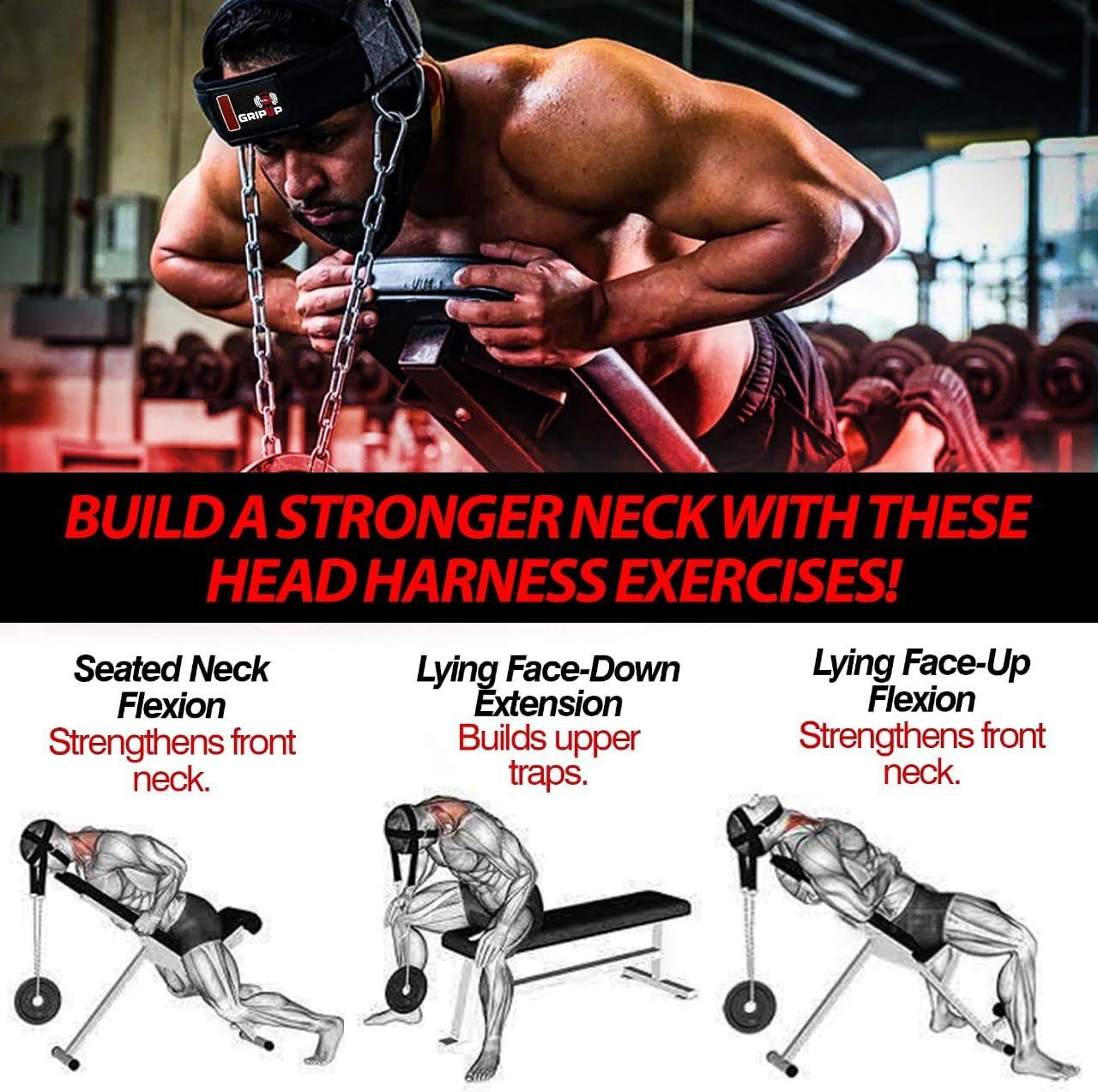 Neck Harness for Strength Training Heavy Duty Adjustable Head Strap with Chain