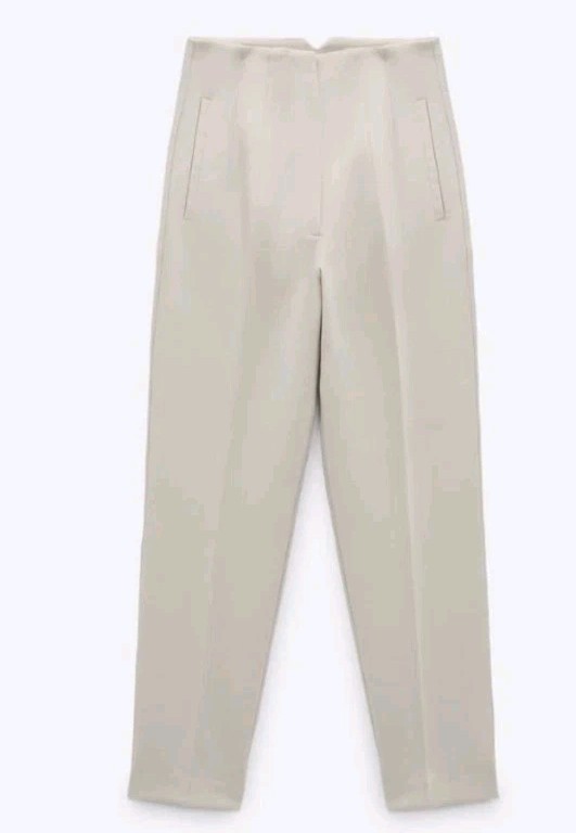 как выглядит ZARA WOMAN NWT HIGH-WAISTED PANTS SEAMS OYSTER WHITE STONE 1478/991 M Sold Out фото
