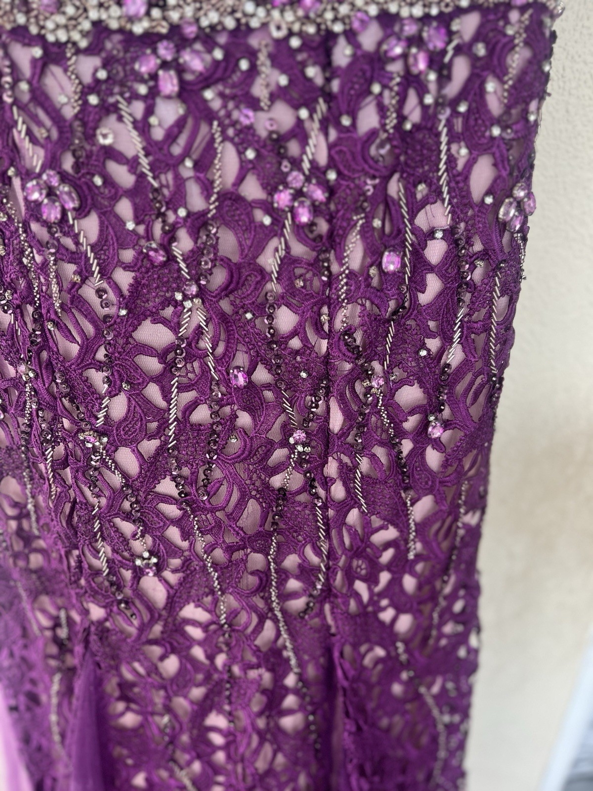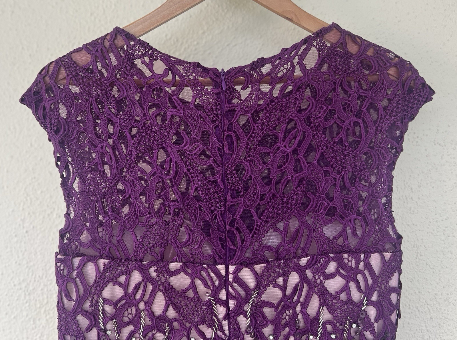 как выглядит Jovani Purple Lace Beaded Mermaid Gown 6 Cap Sleeve Prom Formal Embellished фото