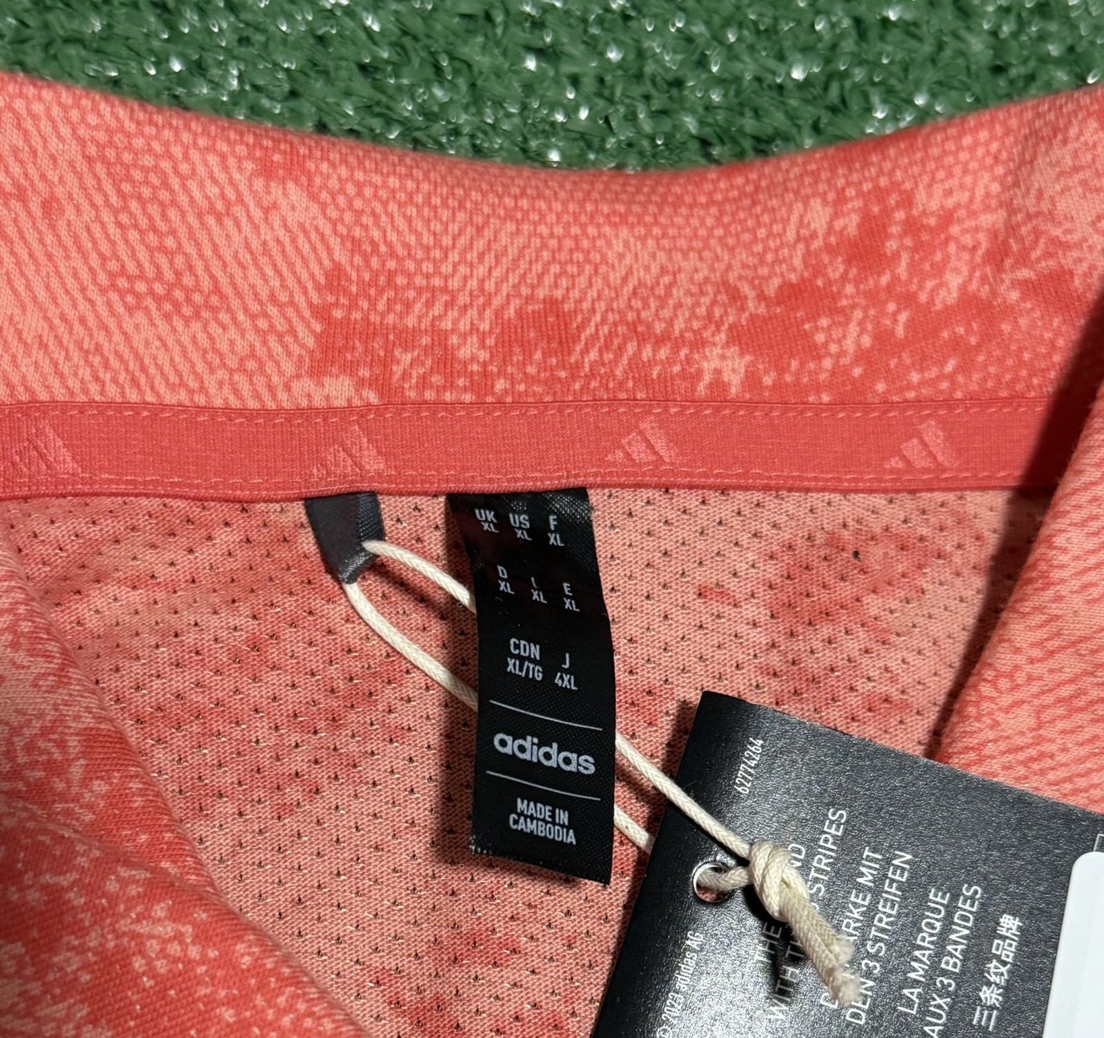 Adidas Golf Polo Shirt Mens XL Orange Camo Jacquard Go-To Printed Performance