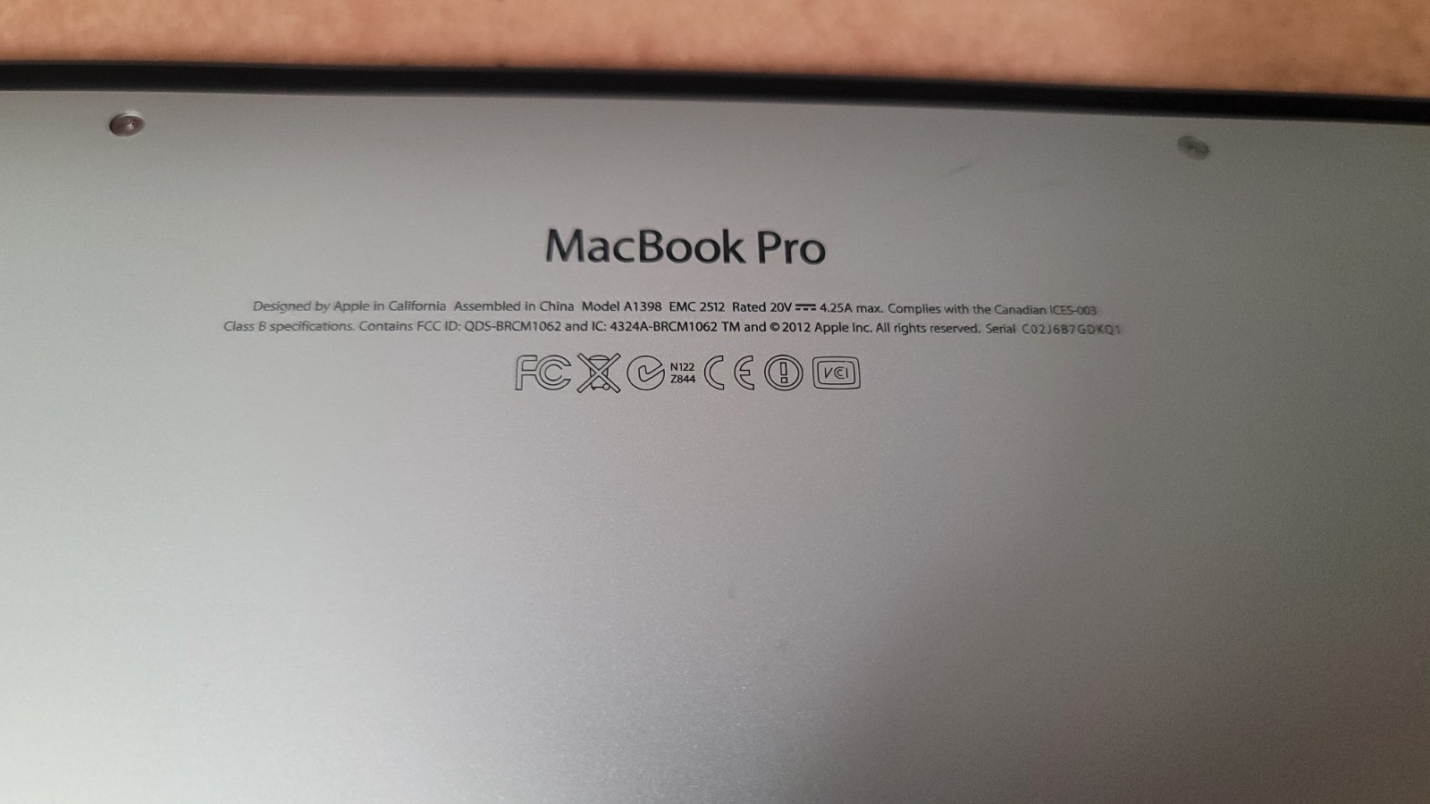 Apple MacBook Pro A1398 Mid 2012 Core i7 2.3GHz 8GB RAM 256GB SSD Catalina10.15