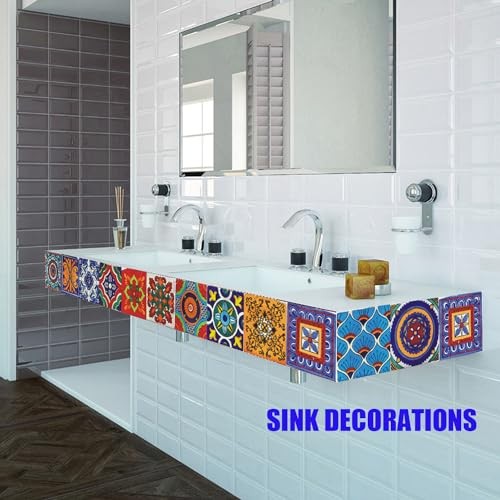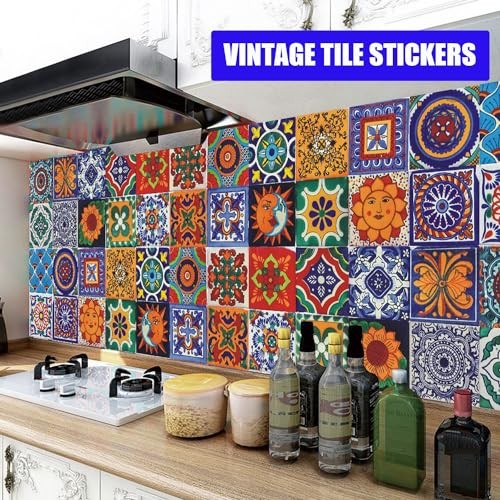 24Pcs Tile Stickers 3.93x3.93 Inch Bohemian Style Peel and Stick Tile 4x4in