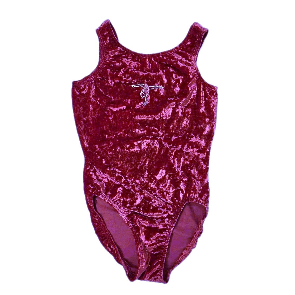 GK Elite VTG Crushed Velvet Leotard Embroidered Logo Cranberry Size AS Adult S