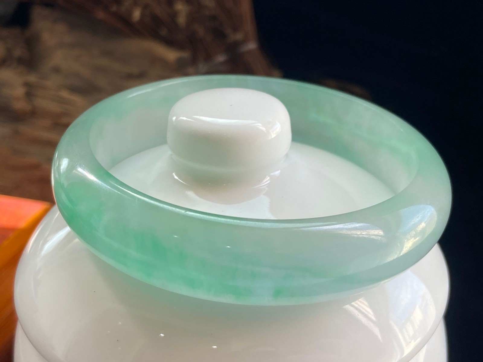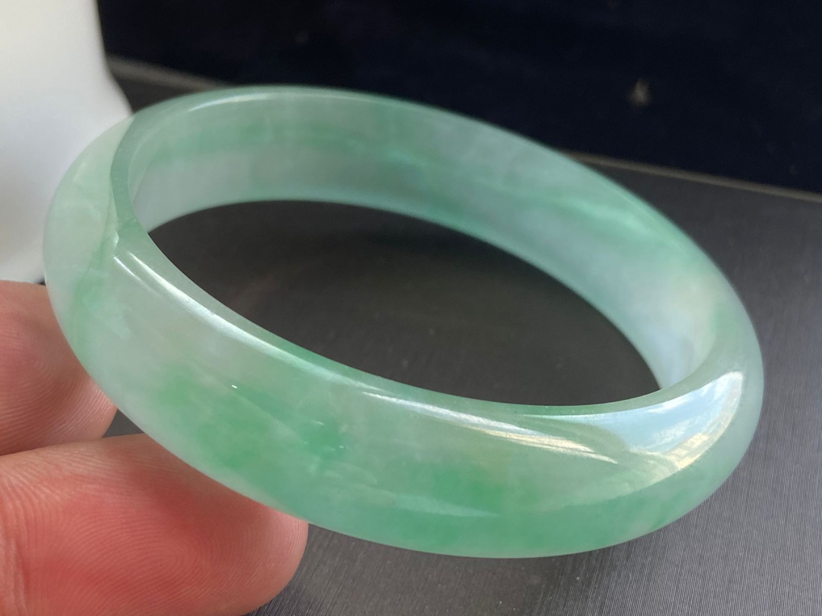 как выглядит Certified Natural Grade Ice Green Burmese Jade jadeite bracelet bangle 56MM-- фото
