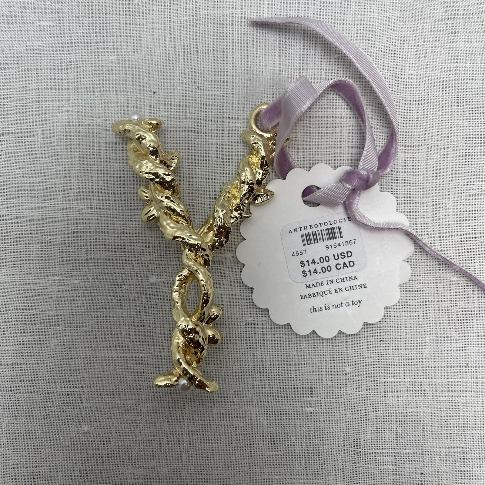 как выглядит Anthropologie Aurelia Gold Monogram Letter Y Initial Christmas Ornament NWT фото
