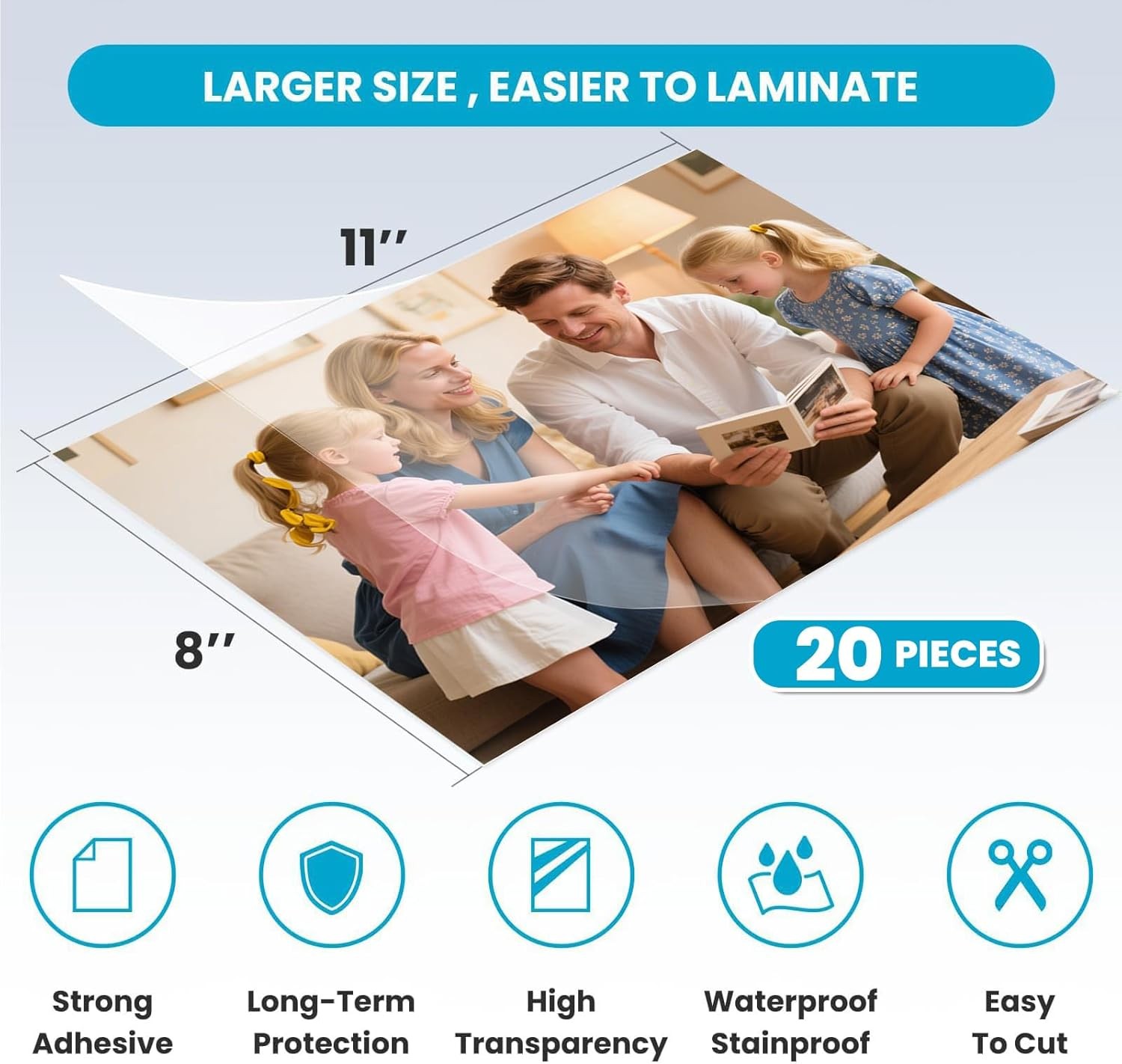 Self Adhesive Laminating Sheets 4mil 8x11 Inch No Heat 20 Pack