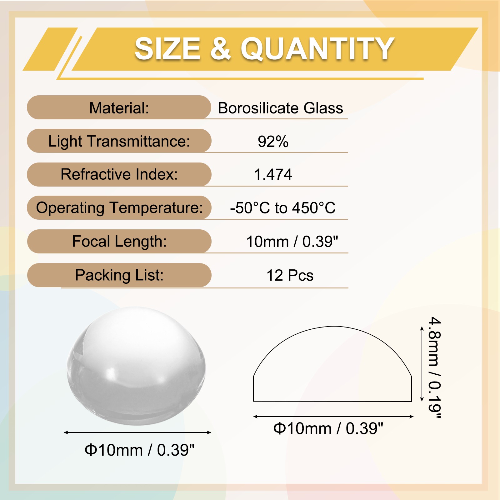 12 Pack Convex Lens, 10mm OD 10mm Focal Length Optical Lenses