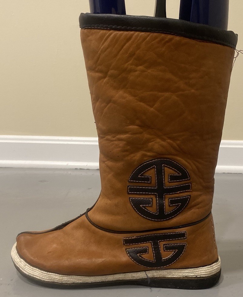 как выглядит Vintage Mongolian Gutal Boots Womens 11 Tribal Handmade Leather Faux Fur Inside фото