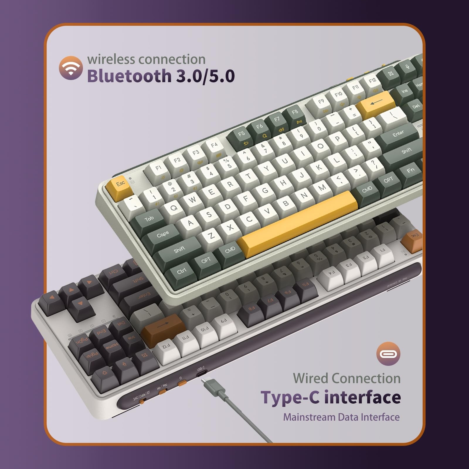 MIIIW 87-Key Hot-swappable Retro Mechanical Keyboard, True RGB Backlit, Tri-Mode