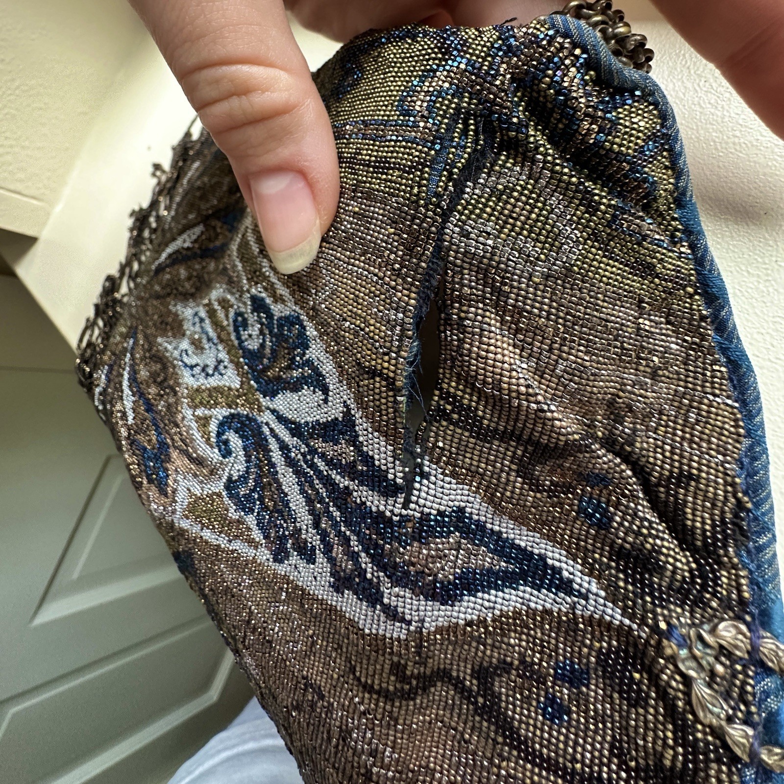 Stunning Antique Victorian French Micro Beaded Purse, Art Nouveau flapper bag