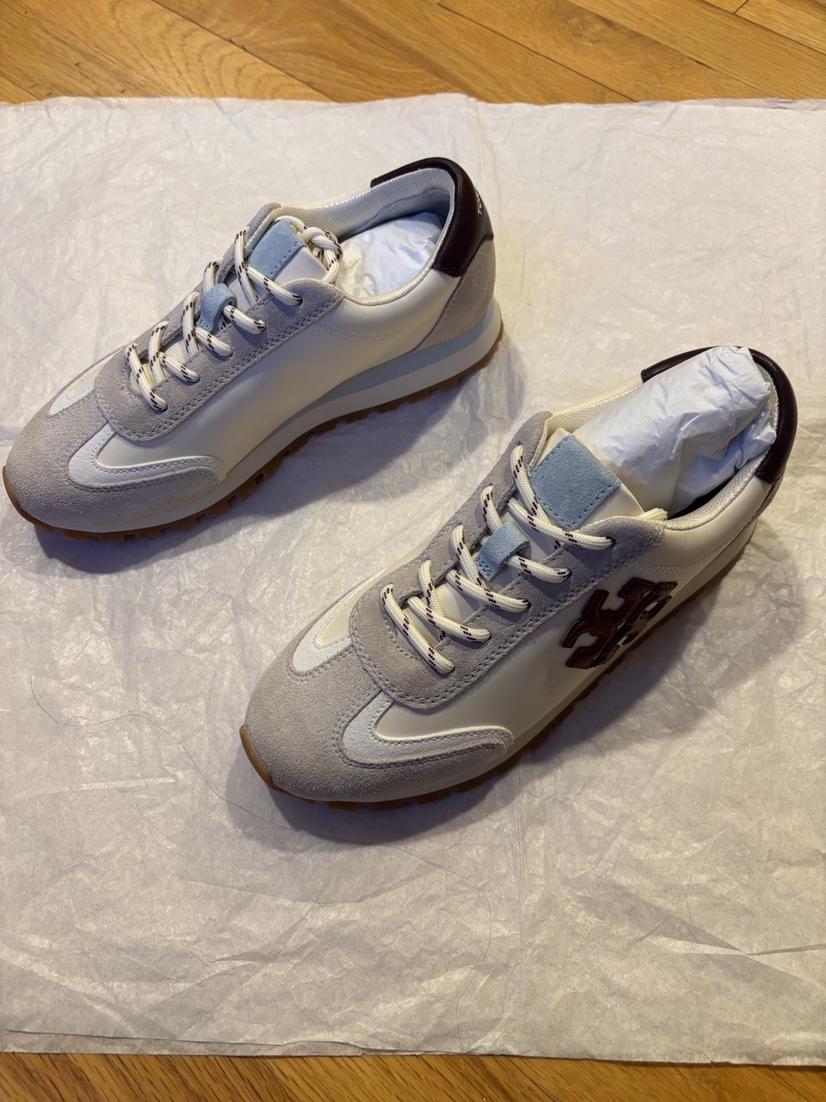 как выглядит Tory Burch Vintage Nylon Leather Sneaker 6.5 M Ivory/Paprika 238 Authentic NWB фото