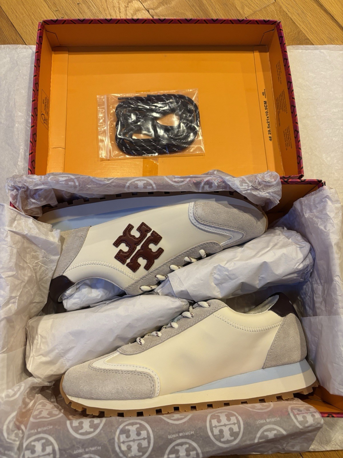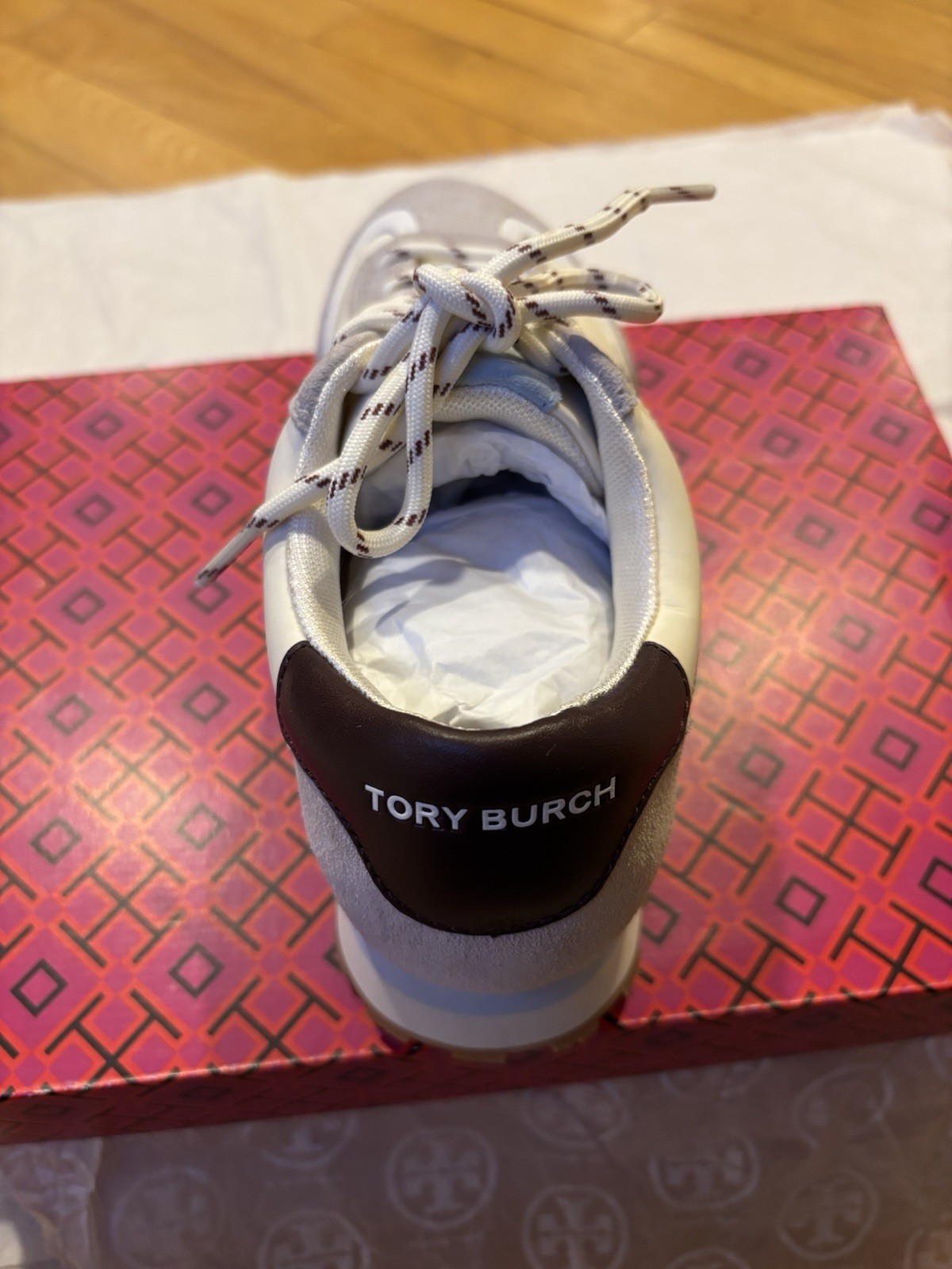 Tory Burch Vintage Nylon Leather Sneaker 6.5 M Ivory/Paprika 238 Authentic NWB