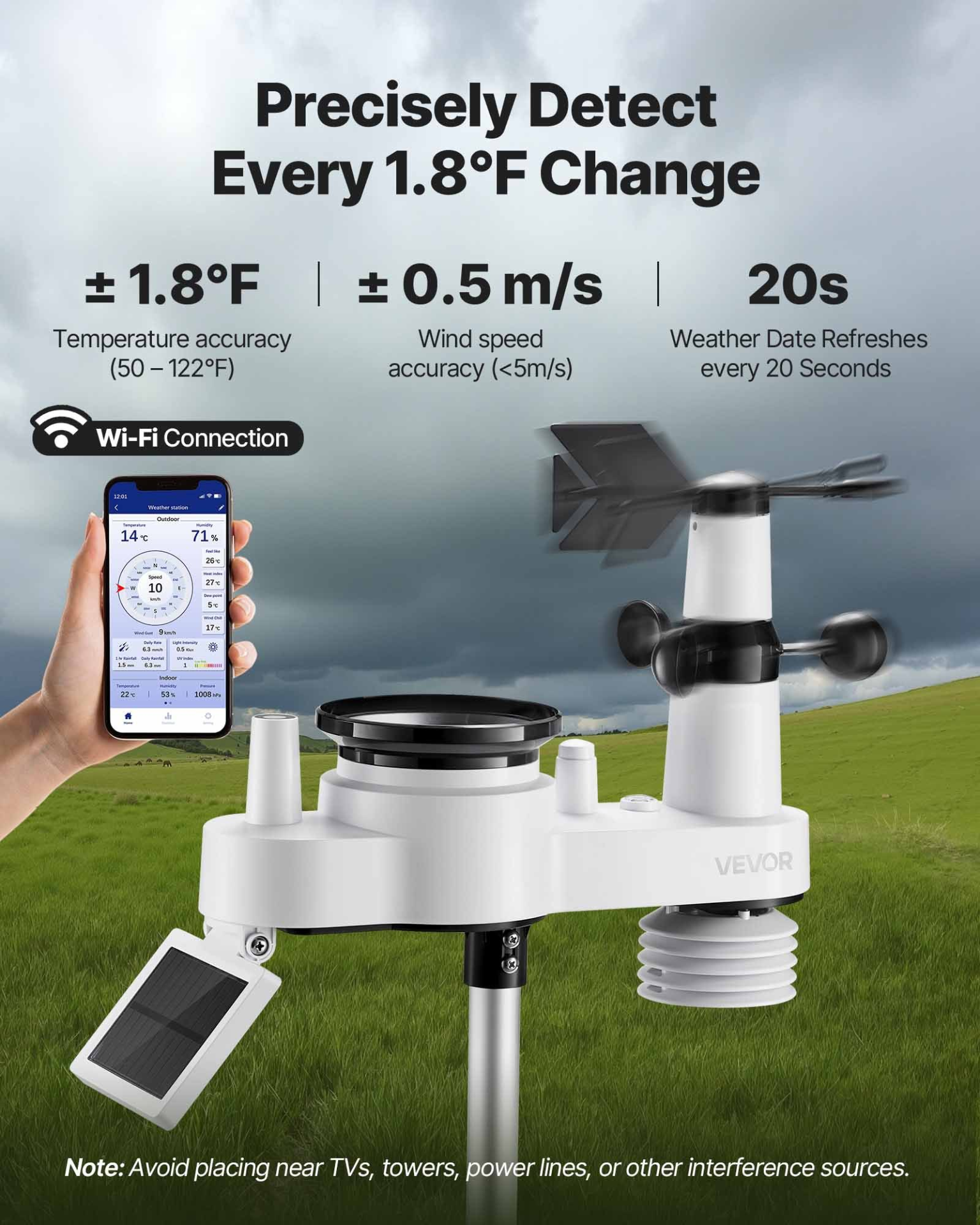 7-in-1 Wi-Fi Weather Station with 7-Inch TFT Display Wireless Outdoor Sensor