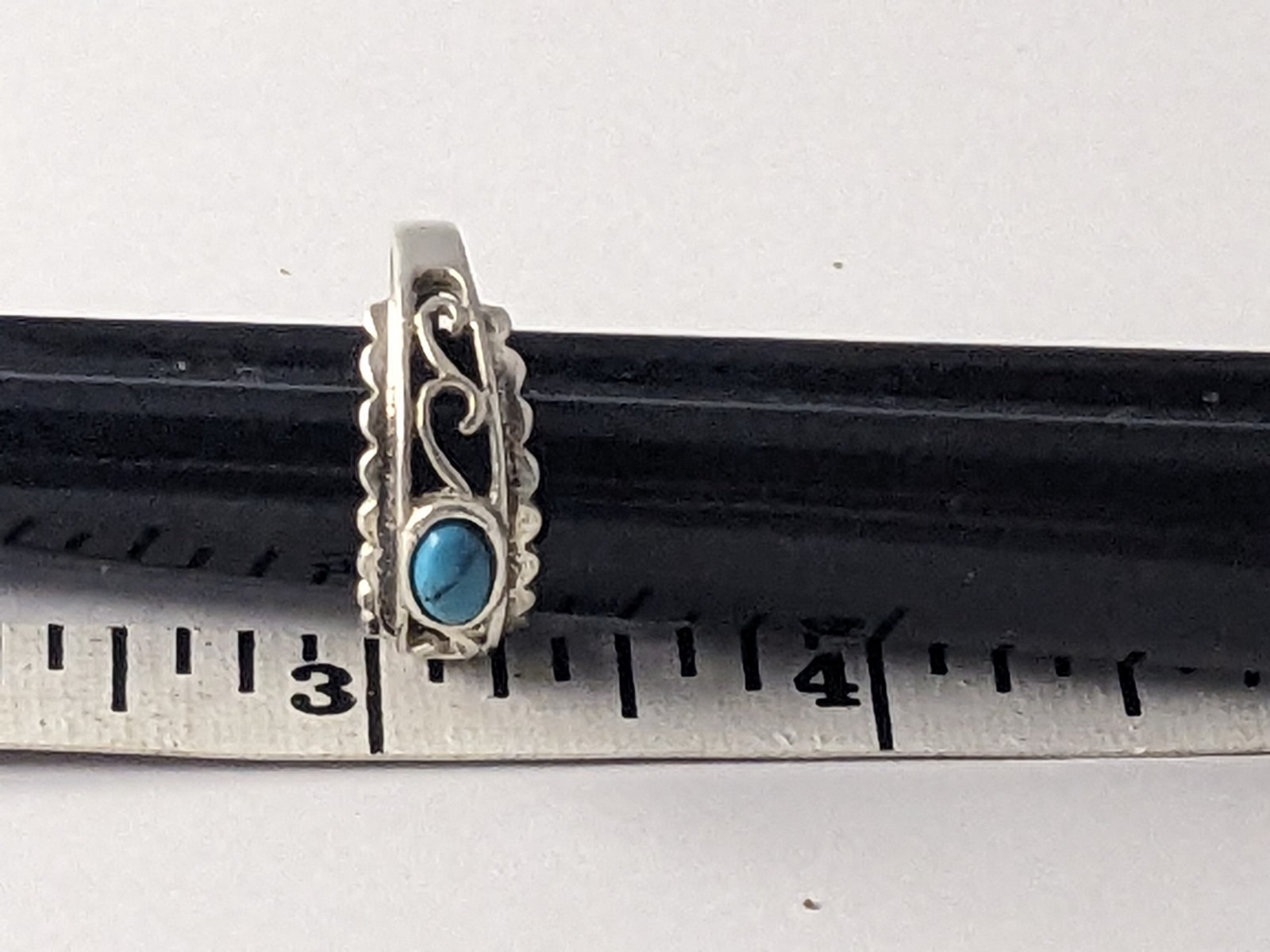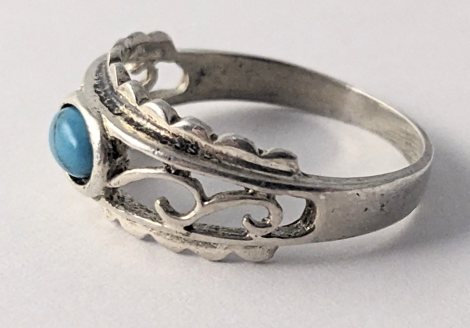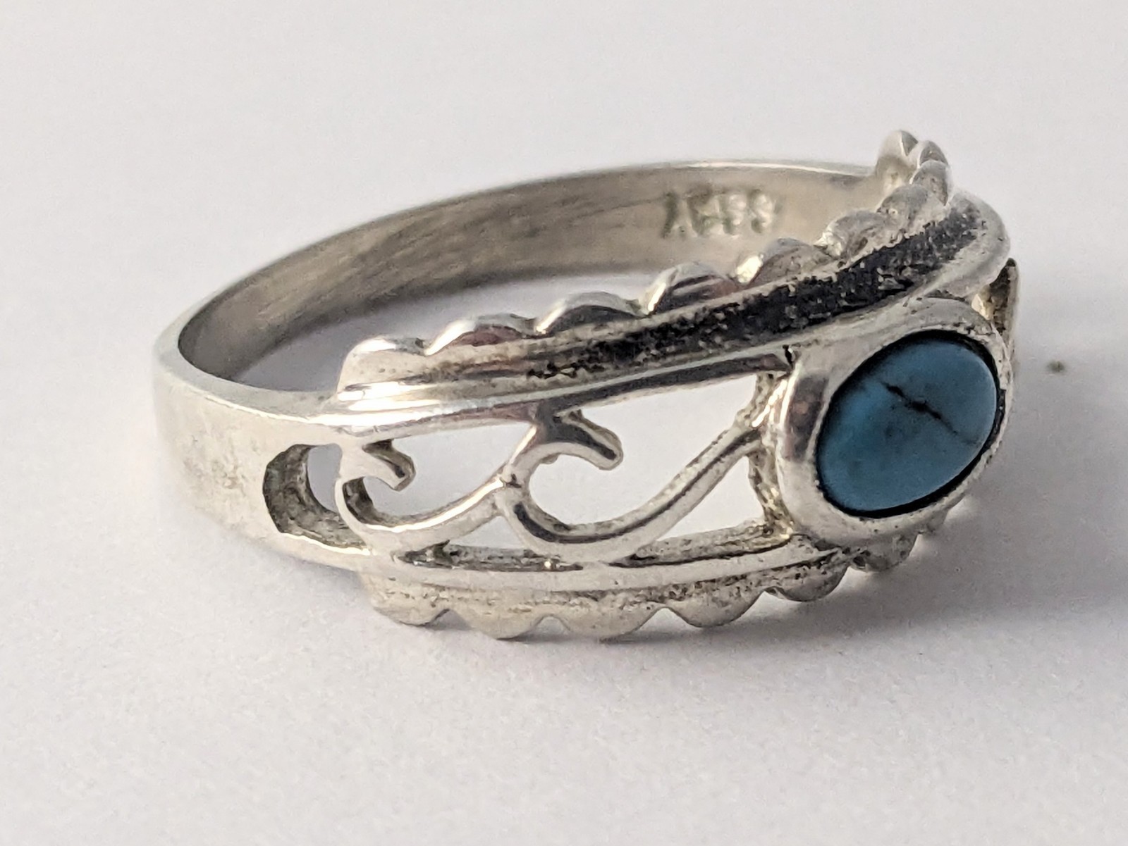 как выглядит Vtg Southwestern Sterling Silver Open Work Turquoise Cabochon Ring Band SZ 9 фото