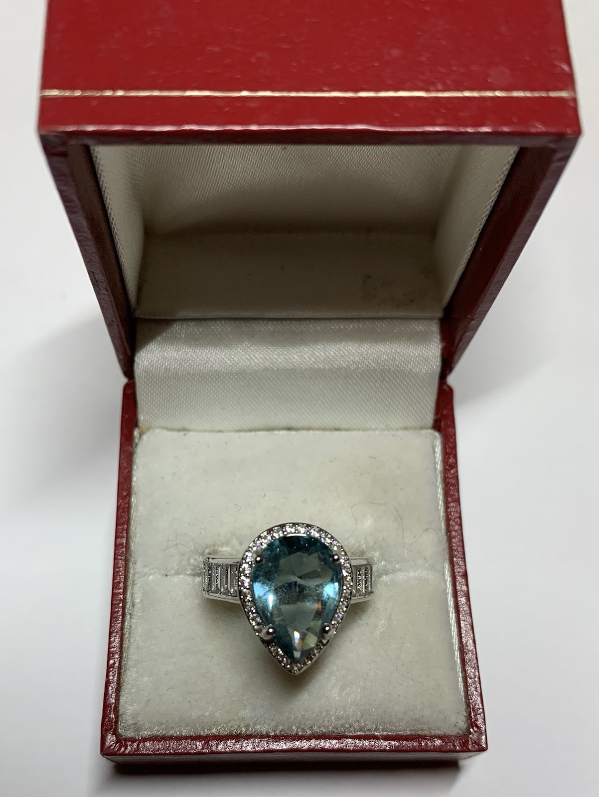 как выглядит Blue Rhinestone with cubic zirconia Ring 925 Sterling Silver Size 6 фото