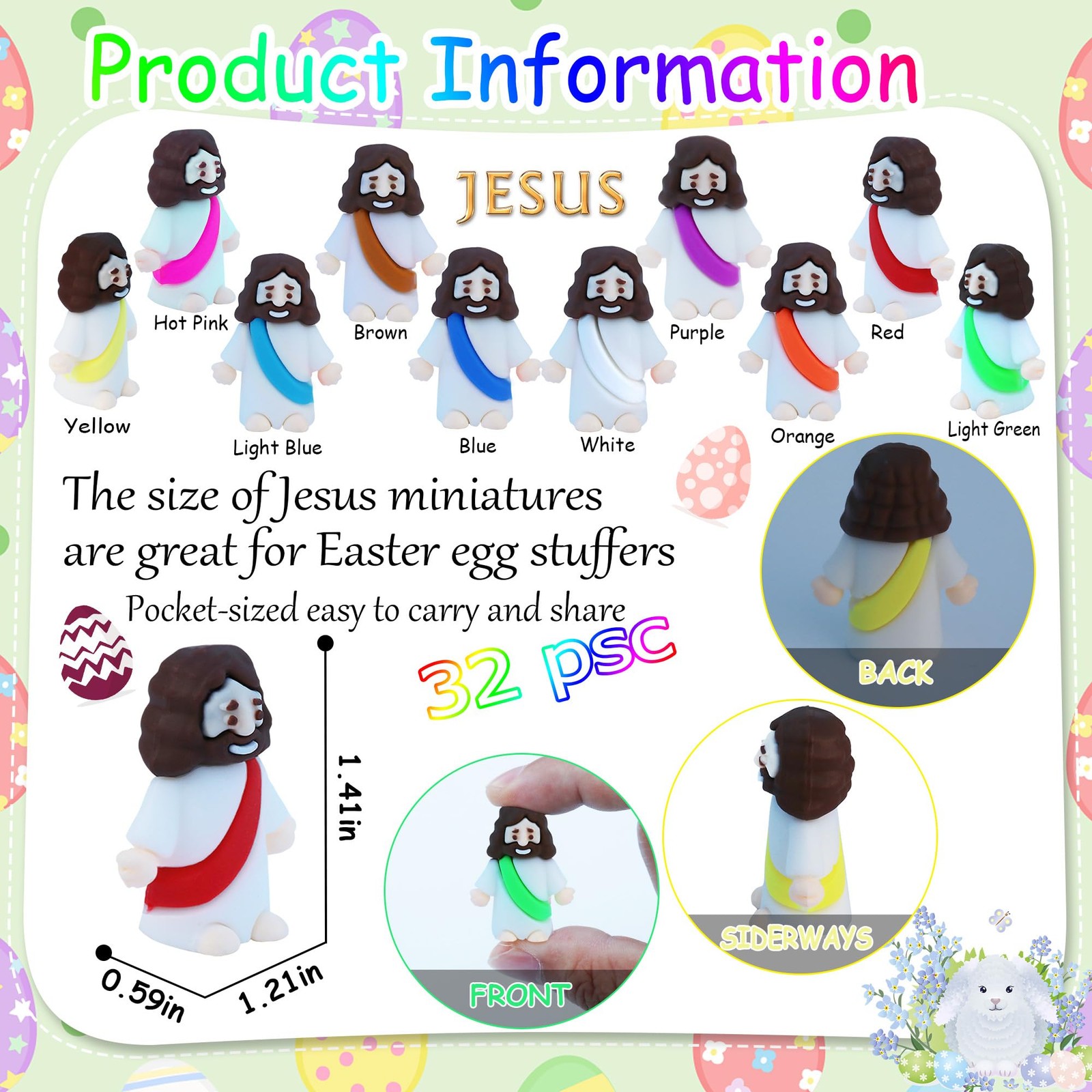 32 Pcs Mini Jesus Figures Easter Toys - Rubber Hide Seek Favors, Baptism Gifts
