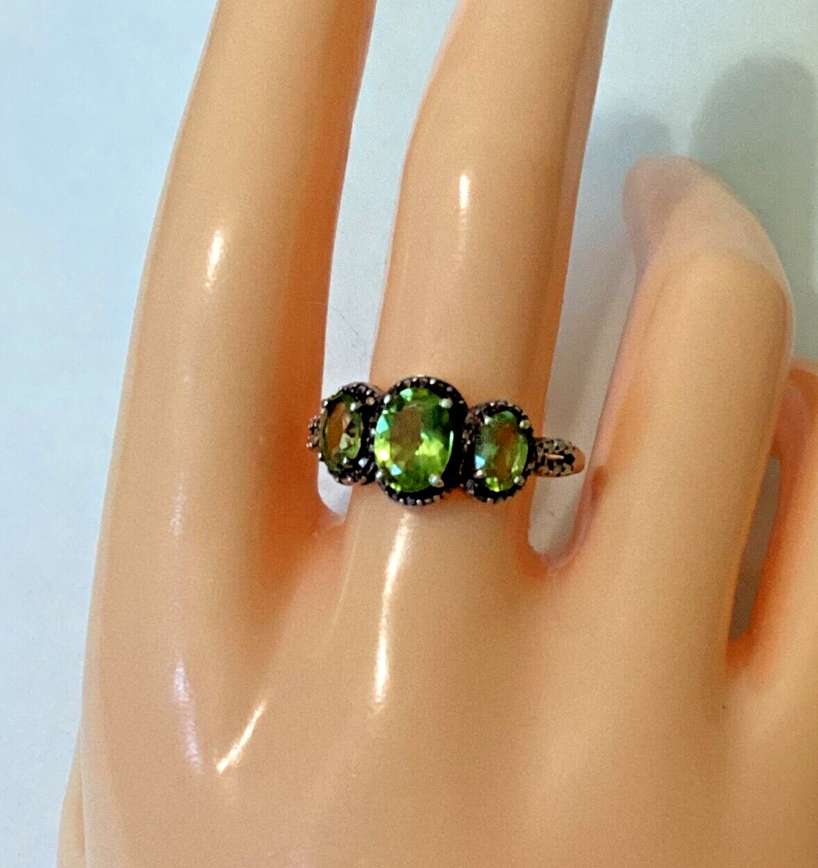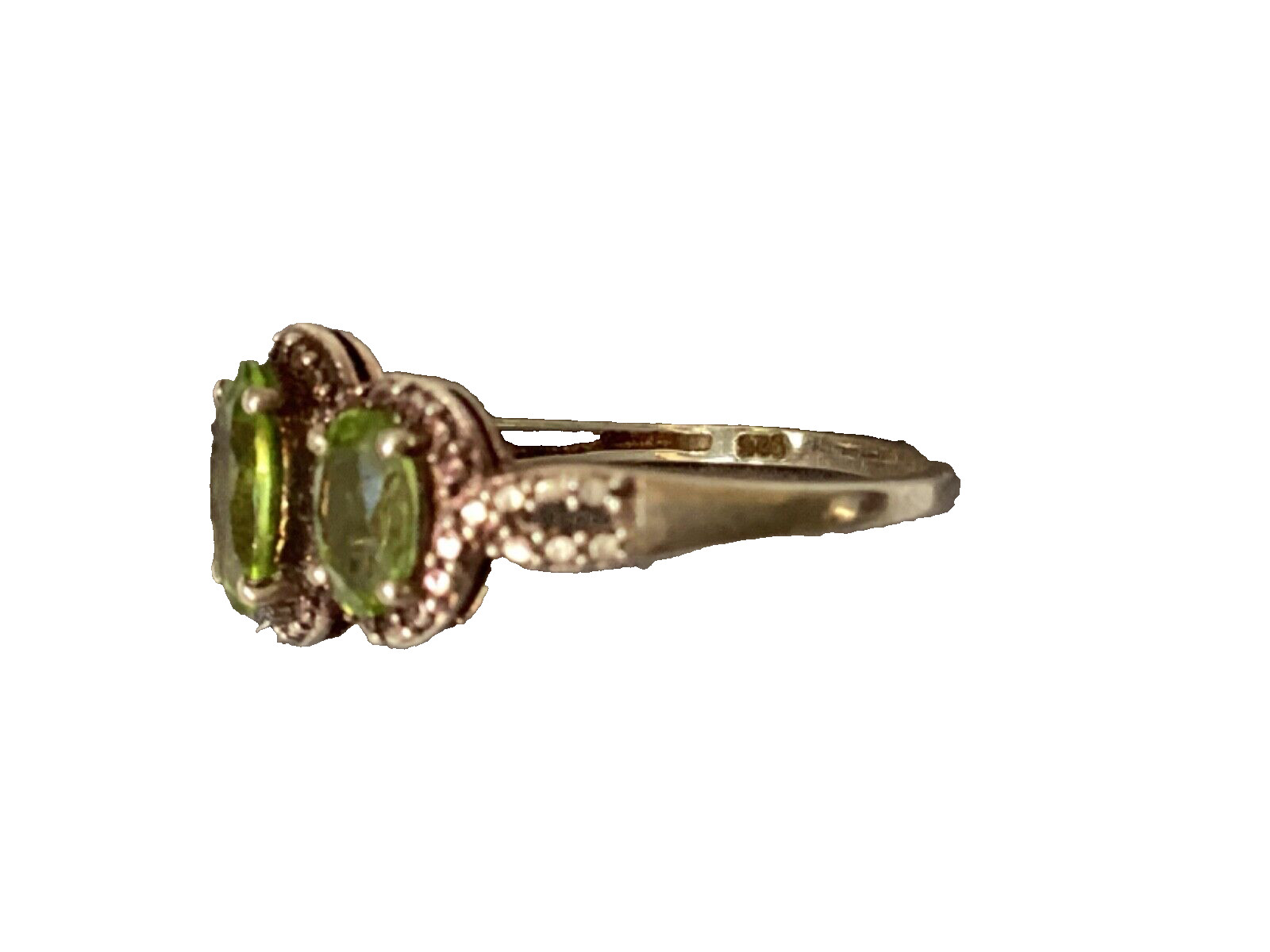 Genuine Peridot Trilogy Sterling Silver 925 Size 8 Ring