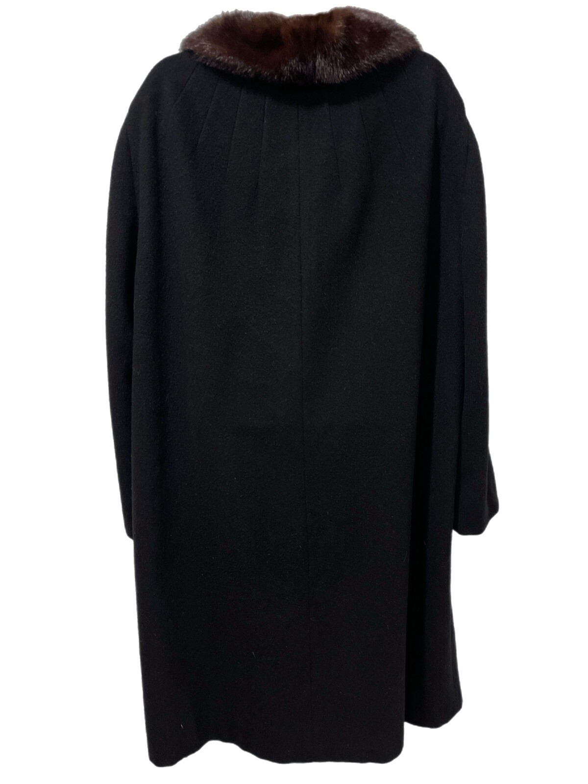 50 s Vintage Exclusive Quality Cashmere Swing Coat Women Mink Fur Collar Large