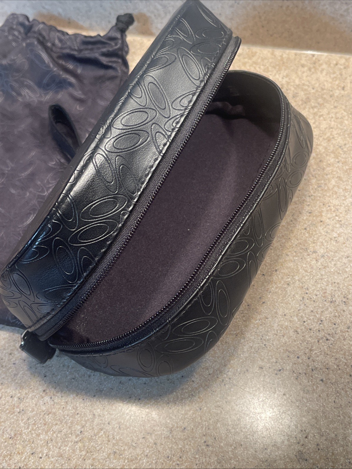 Oakley Sunglasses Case Black All Over Logo Zipper Soft Shell Leather Pouch