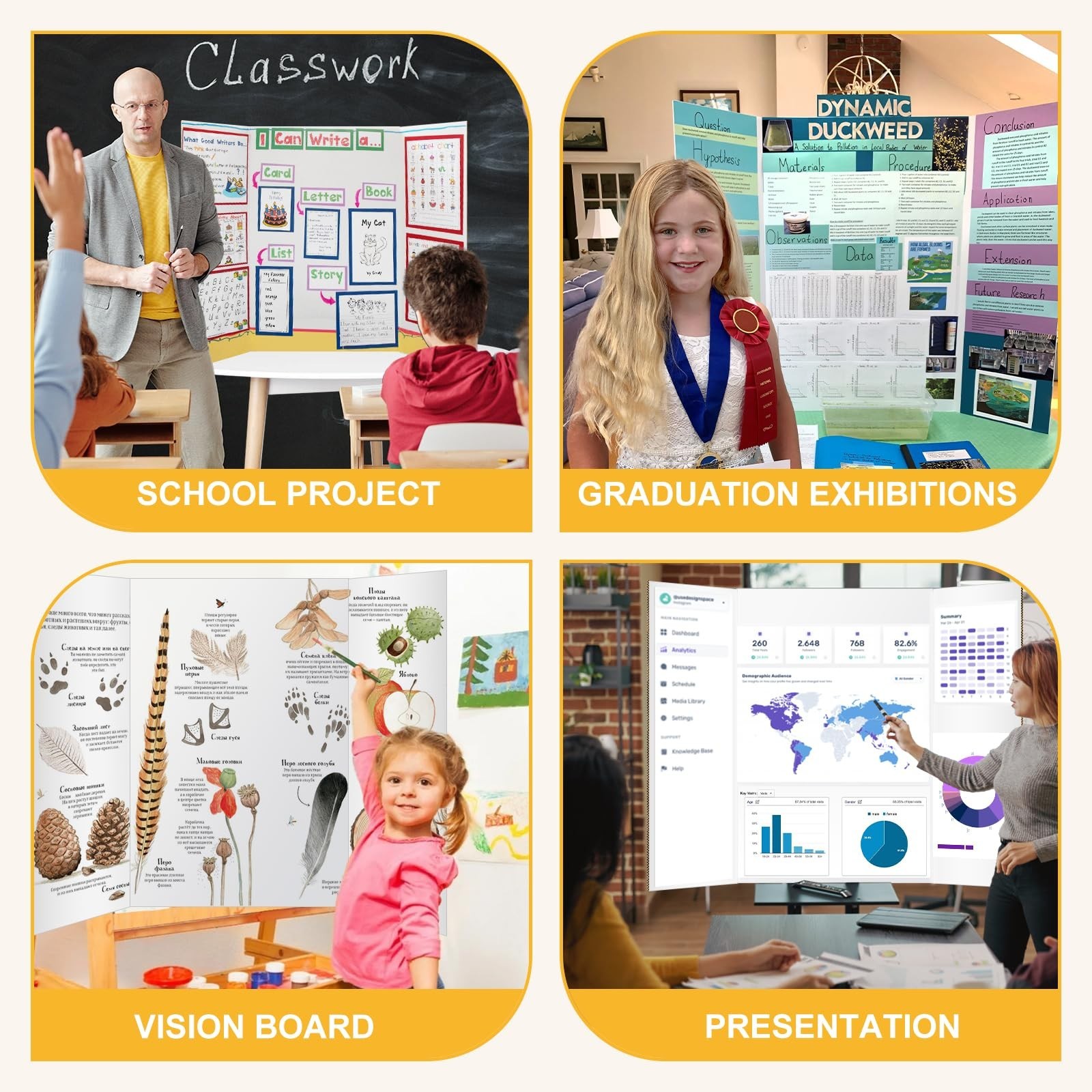 • Trifold Poster Board 36"x48", White Extra Large Corrugated Display Board Fold...