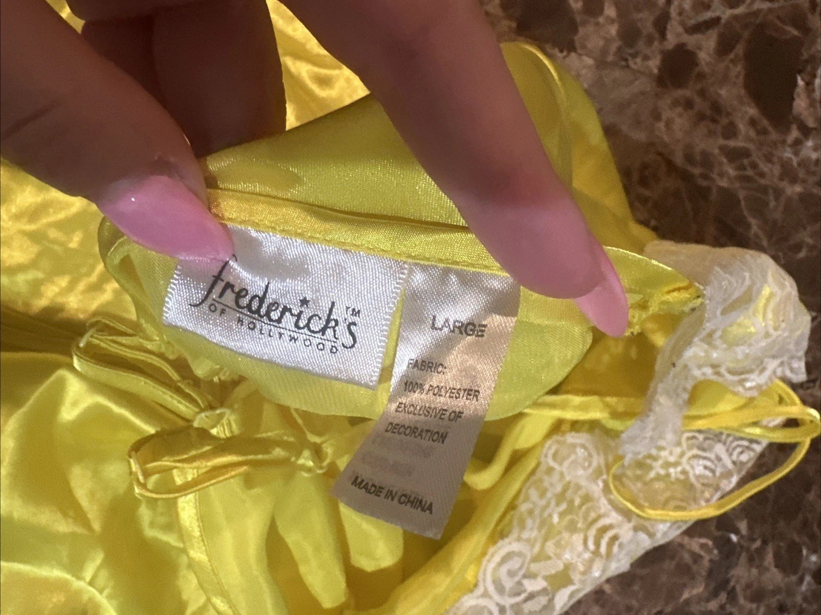 как выглядит Vintage Frederick s of Hollywood Yellow Lace Slip Dress Y2K 2000s Coquette Large фото