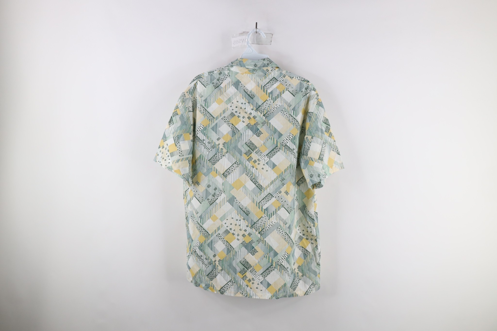 Vtg 60s 70s Streetwear Mens Medium Faded Abstract Camp Collared Button Shirt USA
