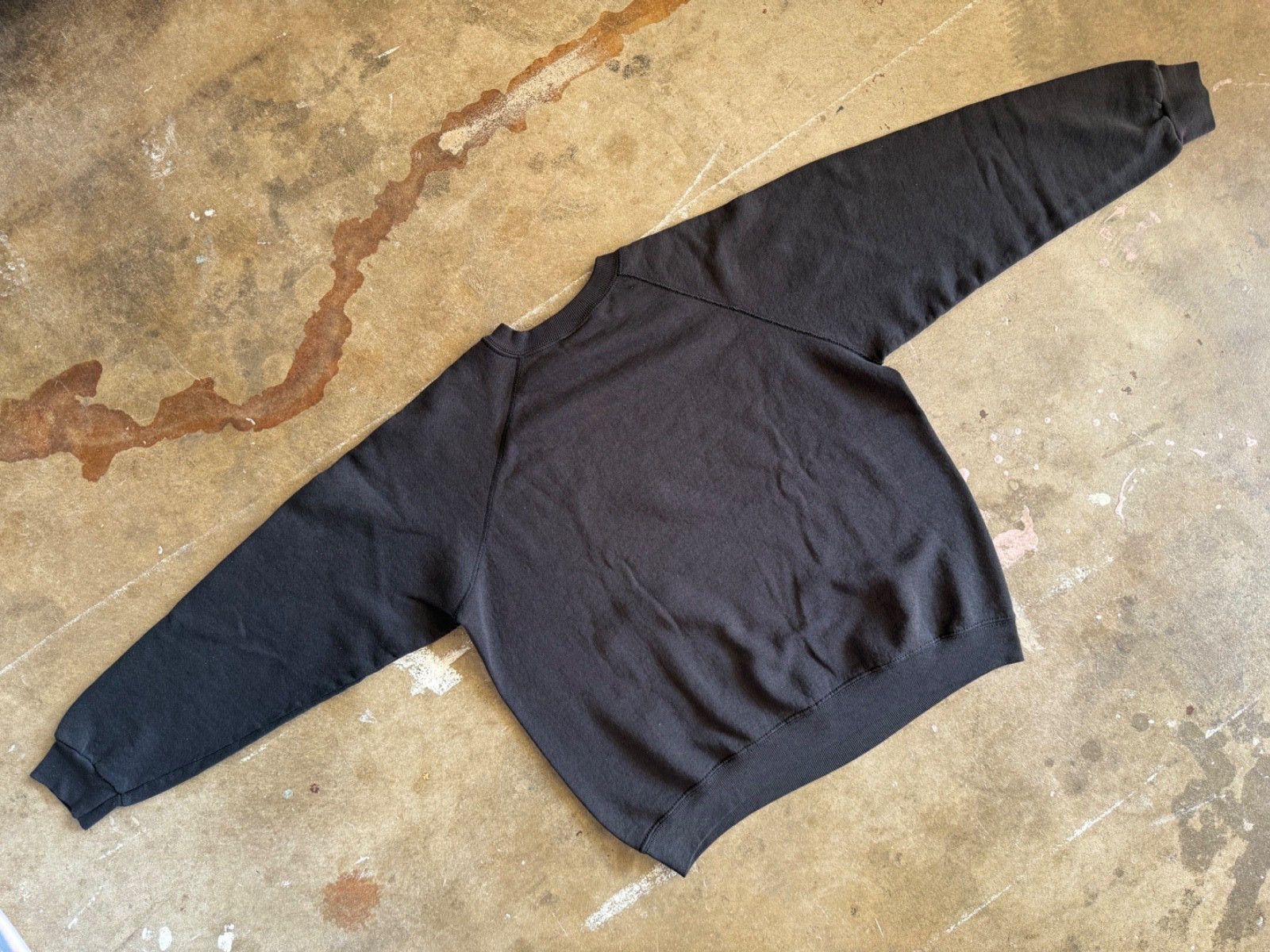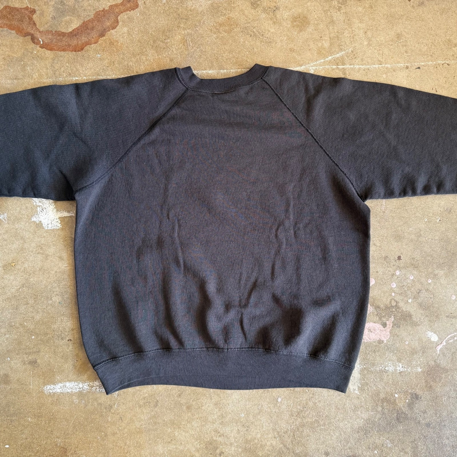 как выглядит 80s BLANK PLAIN BLACK RAGLAN SWEATSHIRT ADULT SZ M WITH THE PERFECT FADE 70s фото