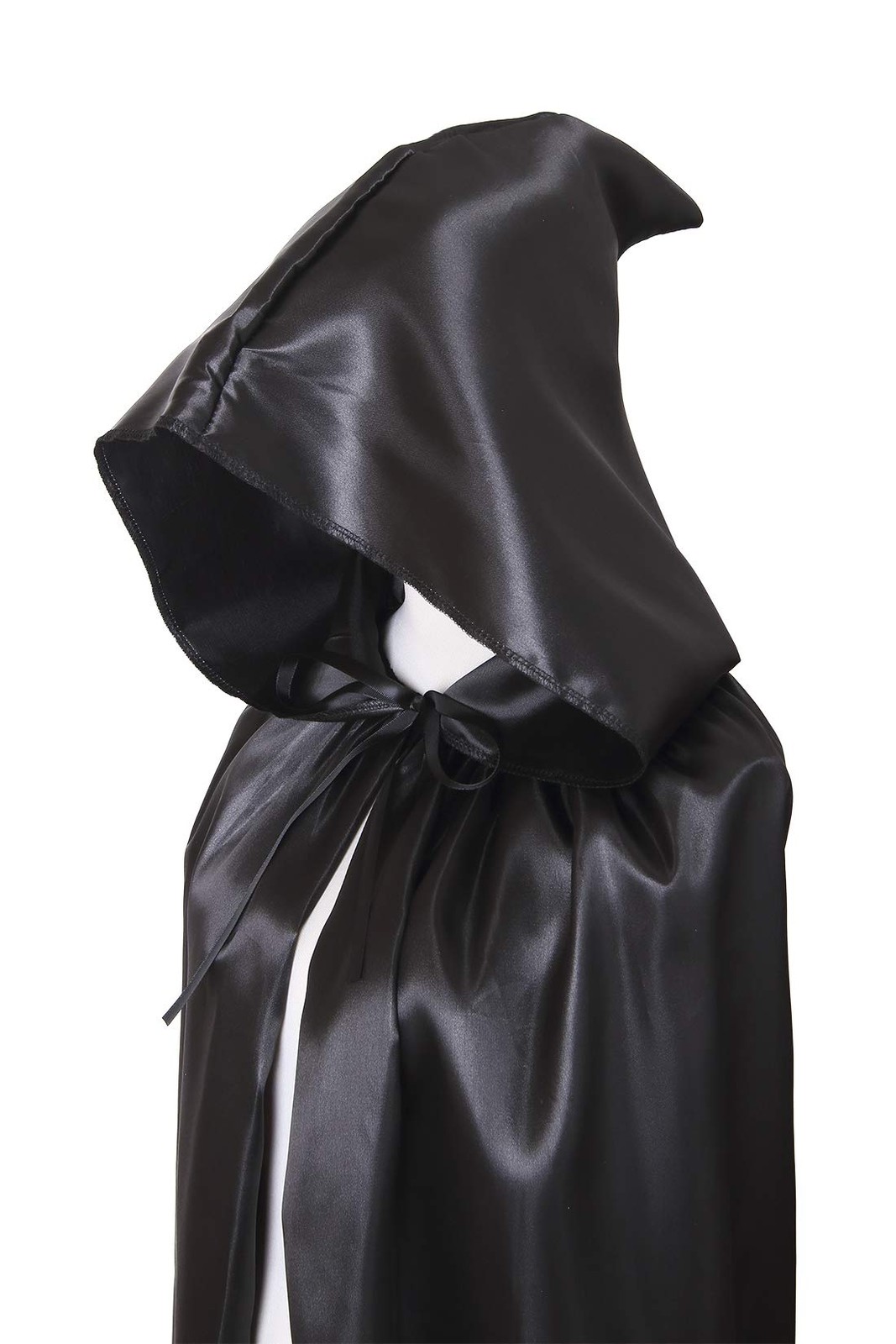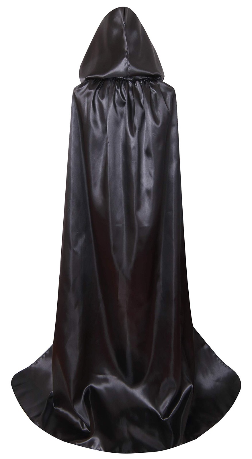 BIGXIAN Extra Long Hooded Satin Cloak, Halloween Christmas Fancy Cape Black