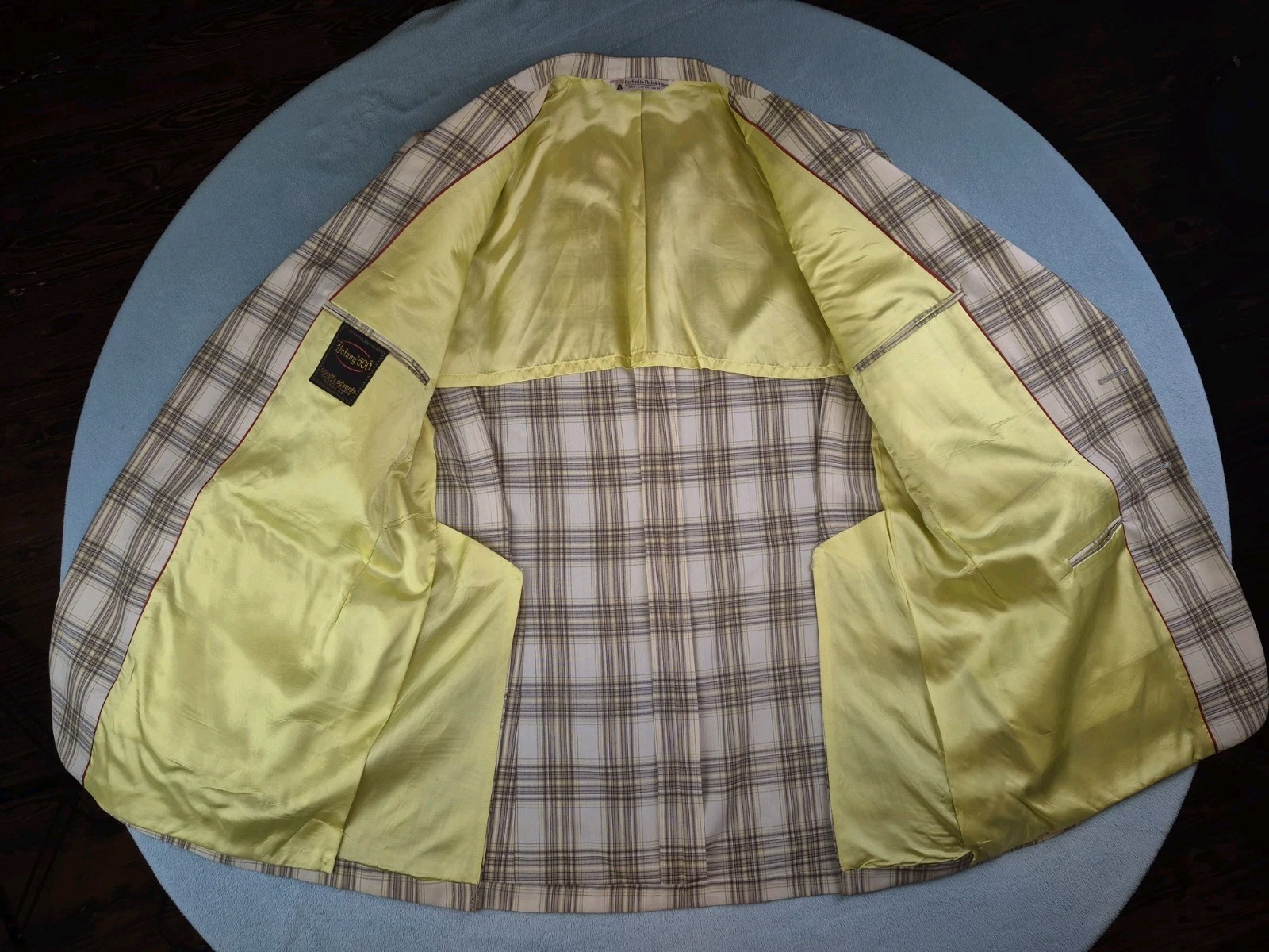 Vintage Botany 500 Plaid Blazer Cream and Brown Mens see measurments