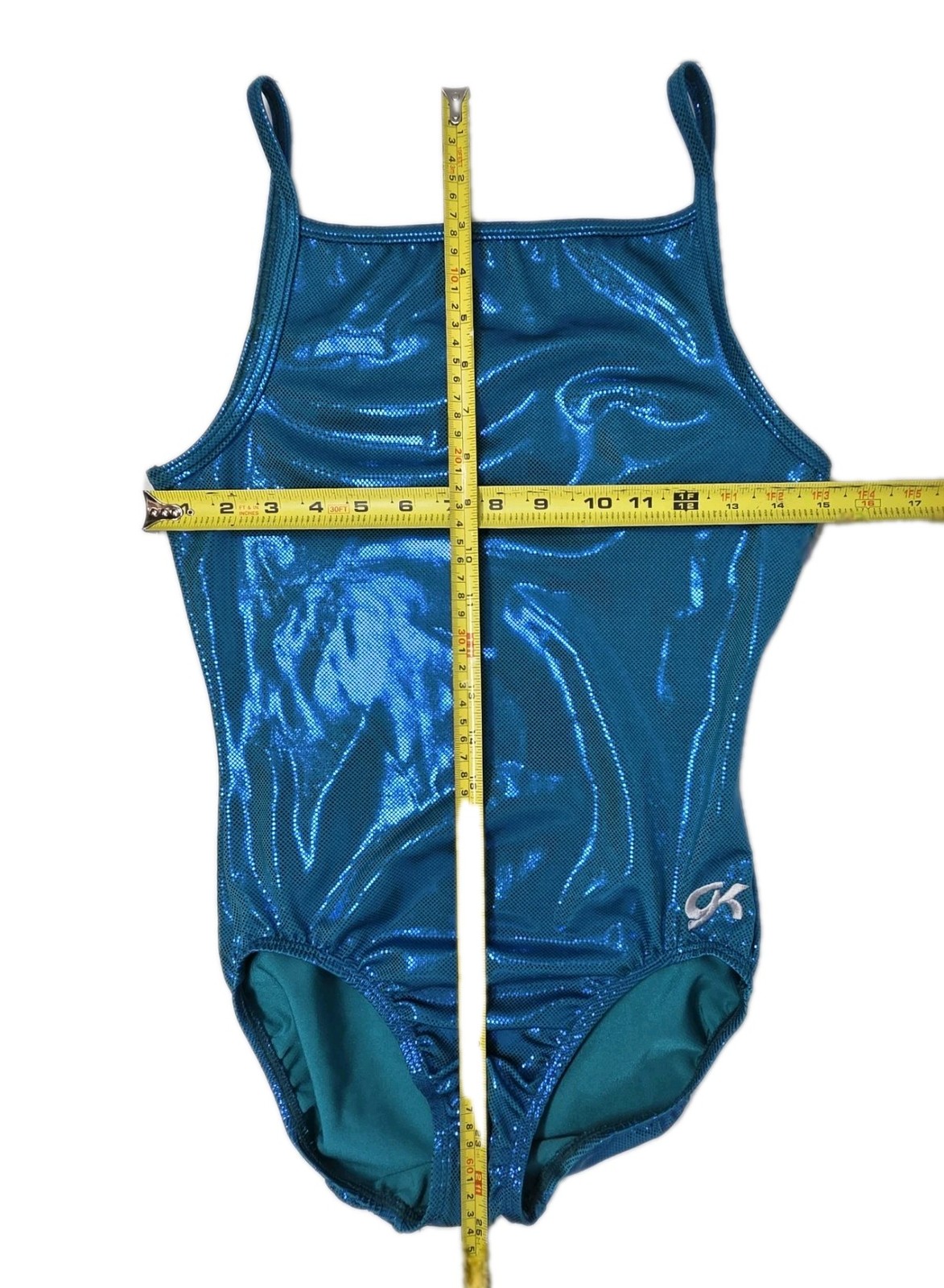 как выглядит GK Elite VTG Teal Blue Pixelated Metallic Camisole Tank Leotard Size AL Adult L фото