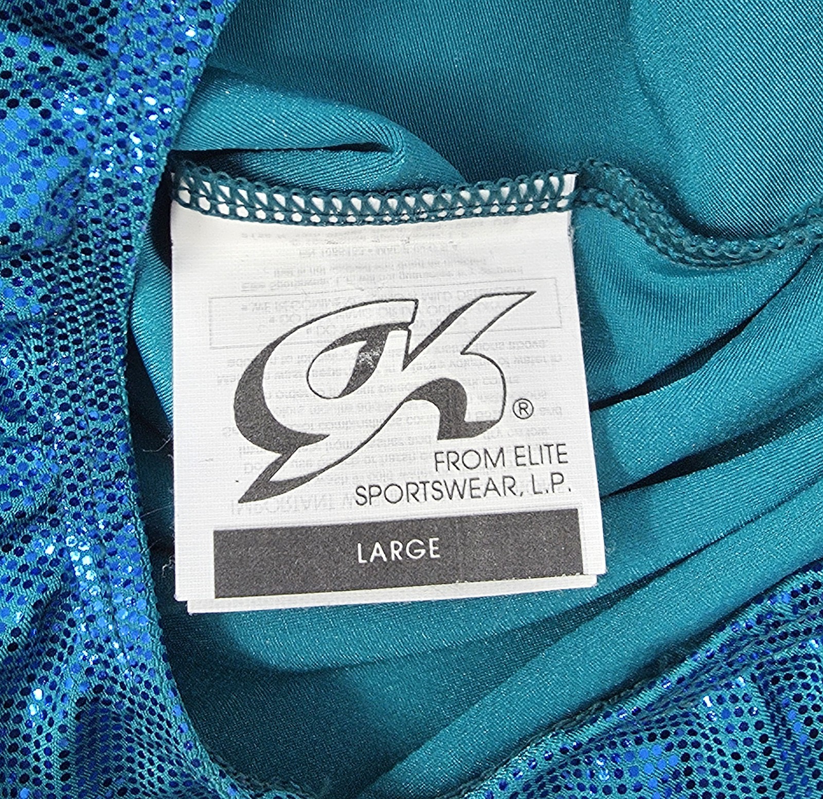 GK Elite VTG Teal Blue Pixelated Metallic Camisole Tank Leotard Size AL Adult L