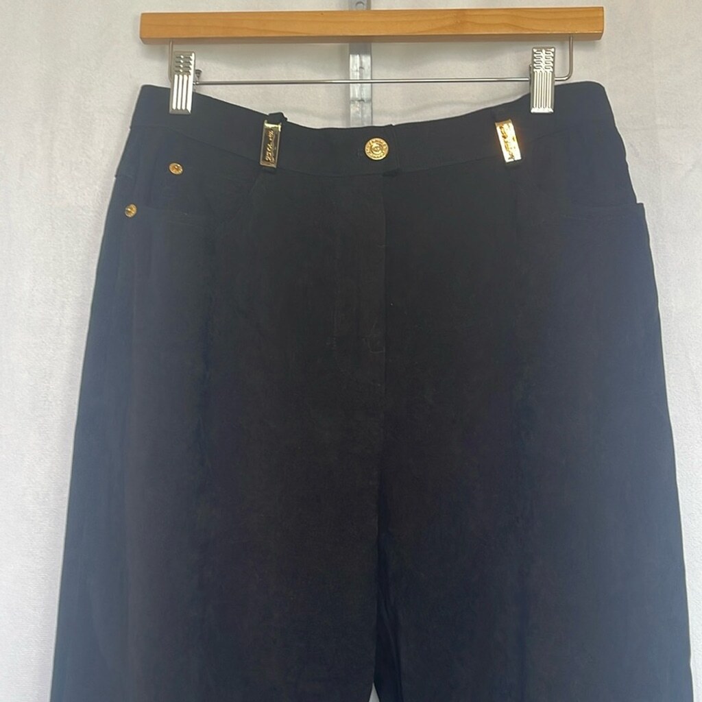 St. John Sport by Marie Gray Velvet Pants Size 8 Black Gold Tone Accents Casual