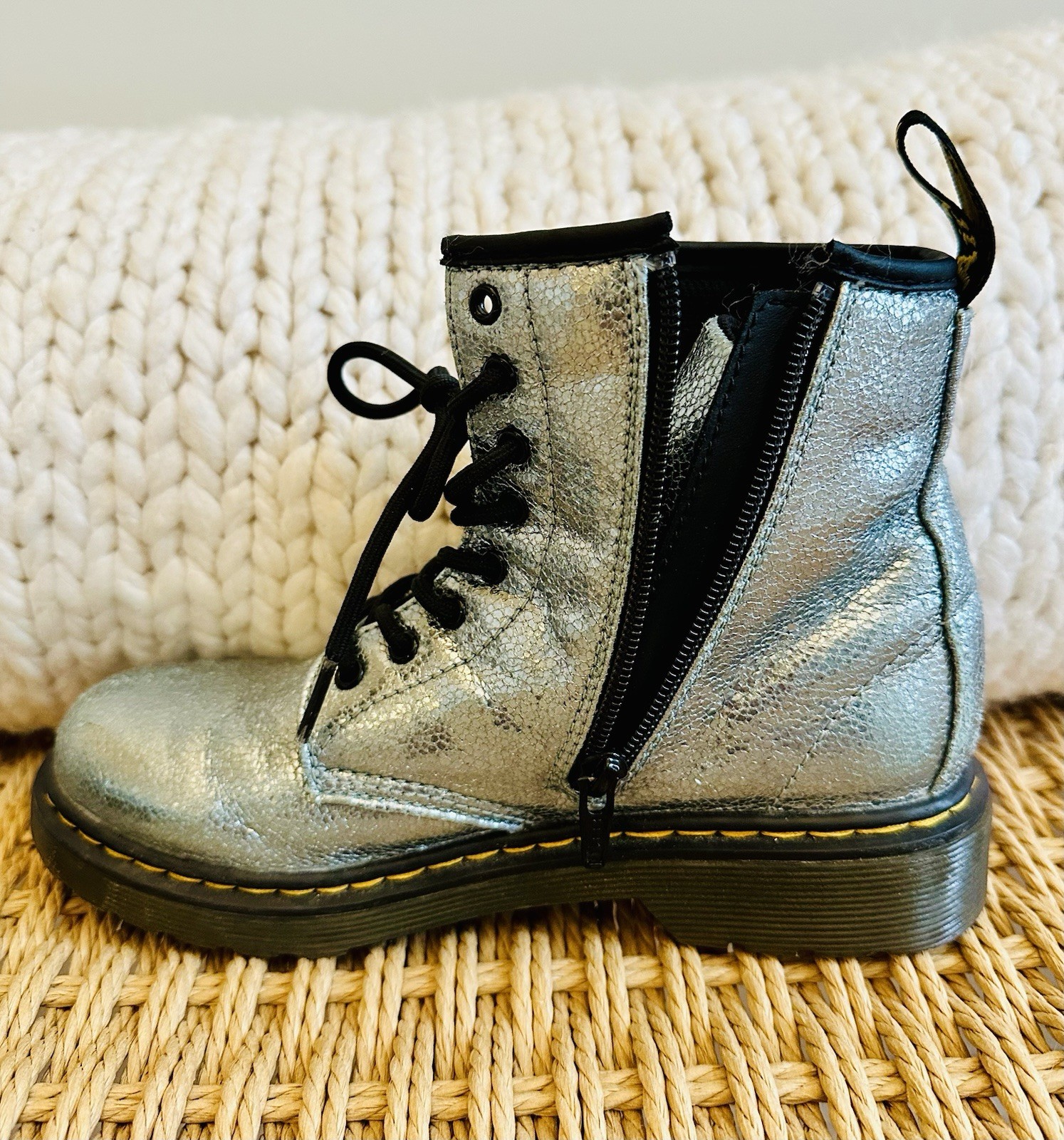 Doc Dr. Martens 1460 J Silver Glitter Combat Boots Youth Size 3 Punk Rock Edgy