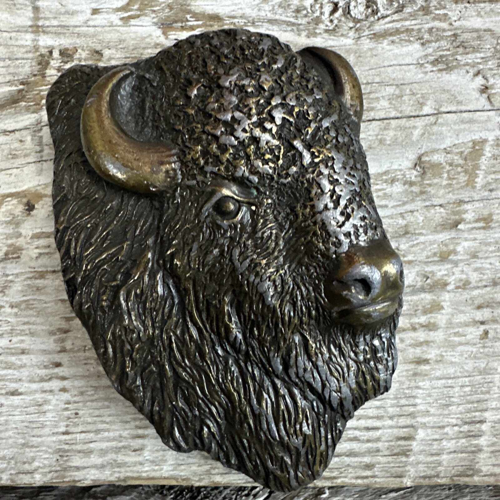 Bergamot Brass Works 1978 BUFFALO BISON HEAD Solid Brass Belt Buckle Made In USA