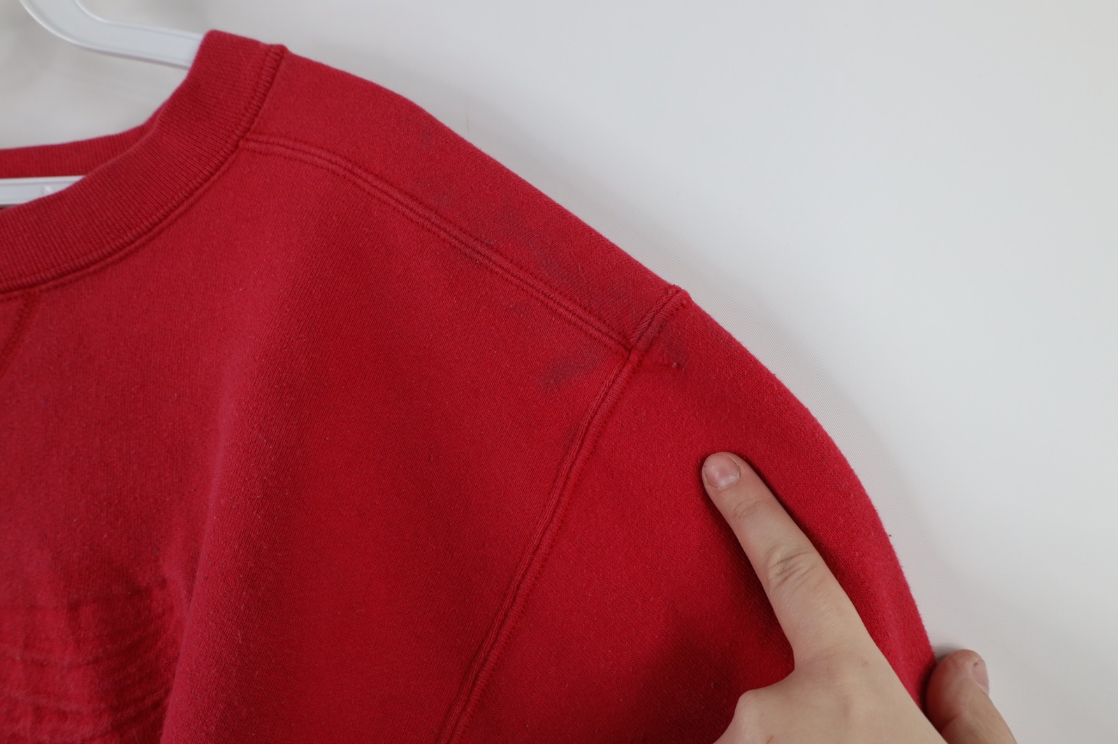 Vintage 90s Mens Medium Faded Detroit Red Wings Hockey Spell Out Sweatshirt Red
