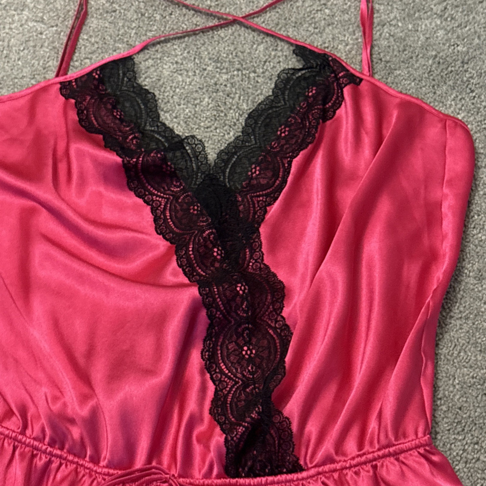 как выглядит Victorias Secret Womens Satin Romper Bodysuit Teddy Lingerie Black Lace VTG L фото