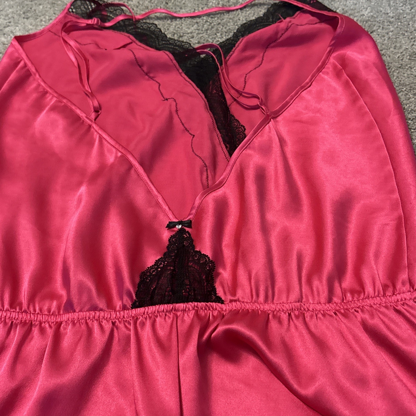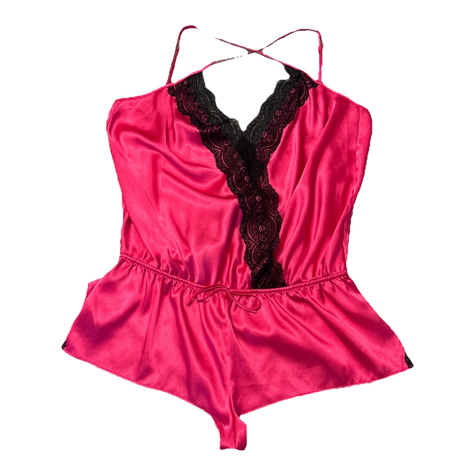 Victoria's Secret Womens Satin Romper Bodysuit Teddy Lingerie Black Lace VTG L