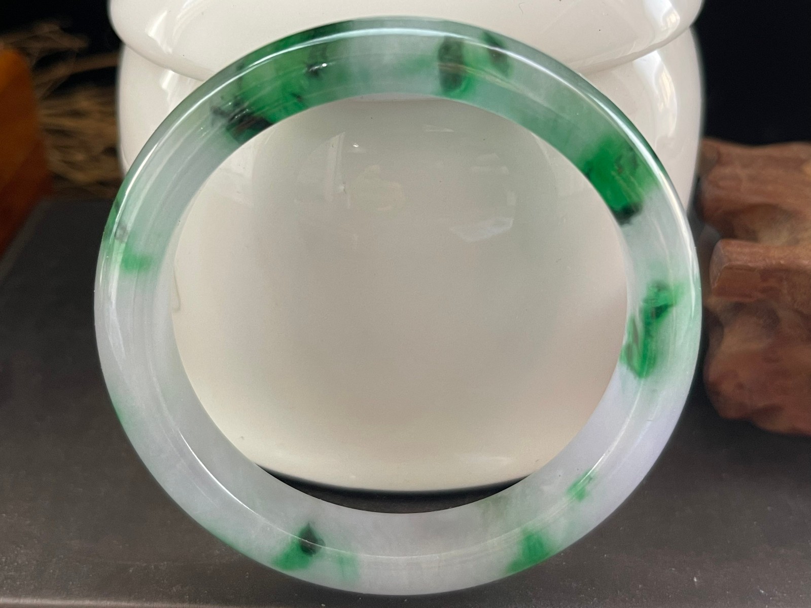 как выглядит Certified Natural Grade AAA Ice Burmese Green Jade jadeite bracelet bangle 55MM фото