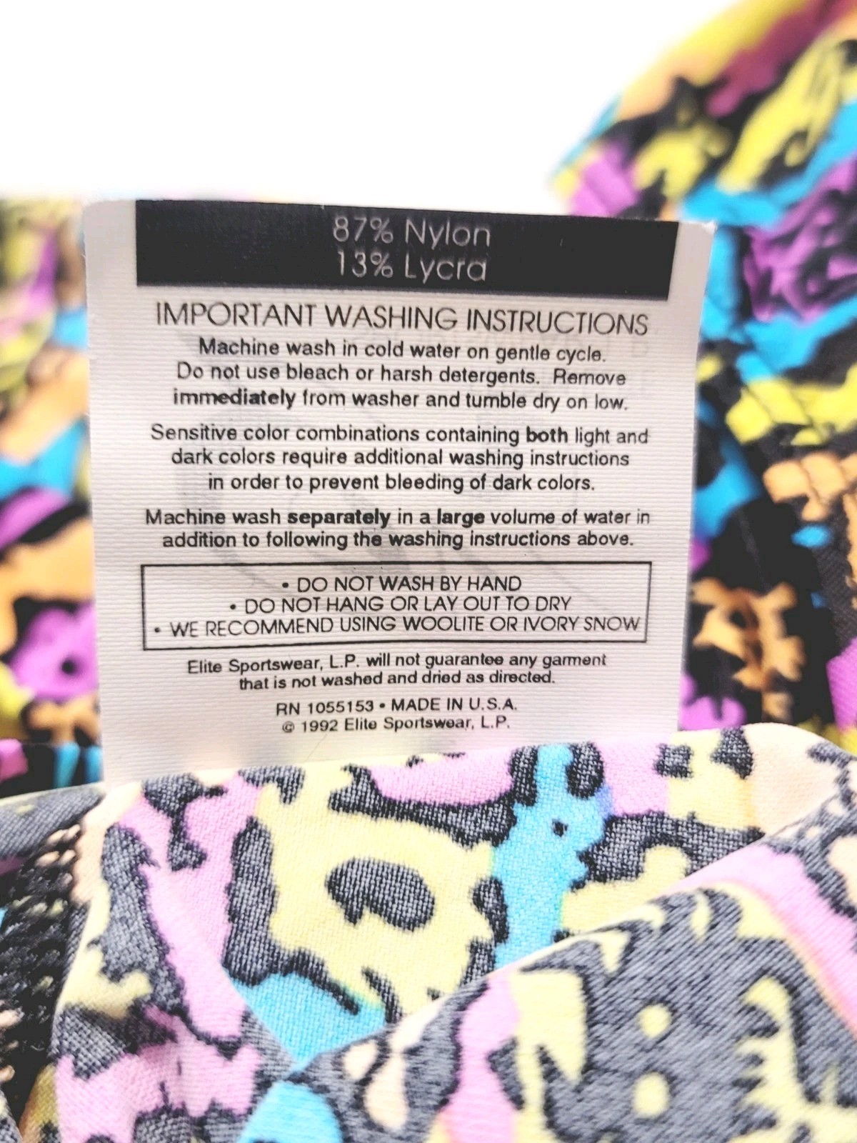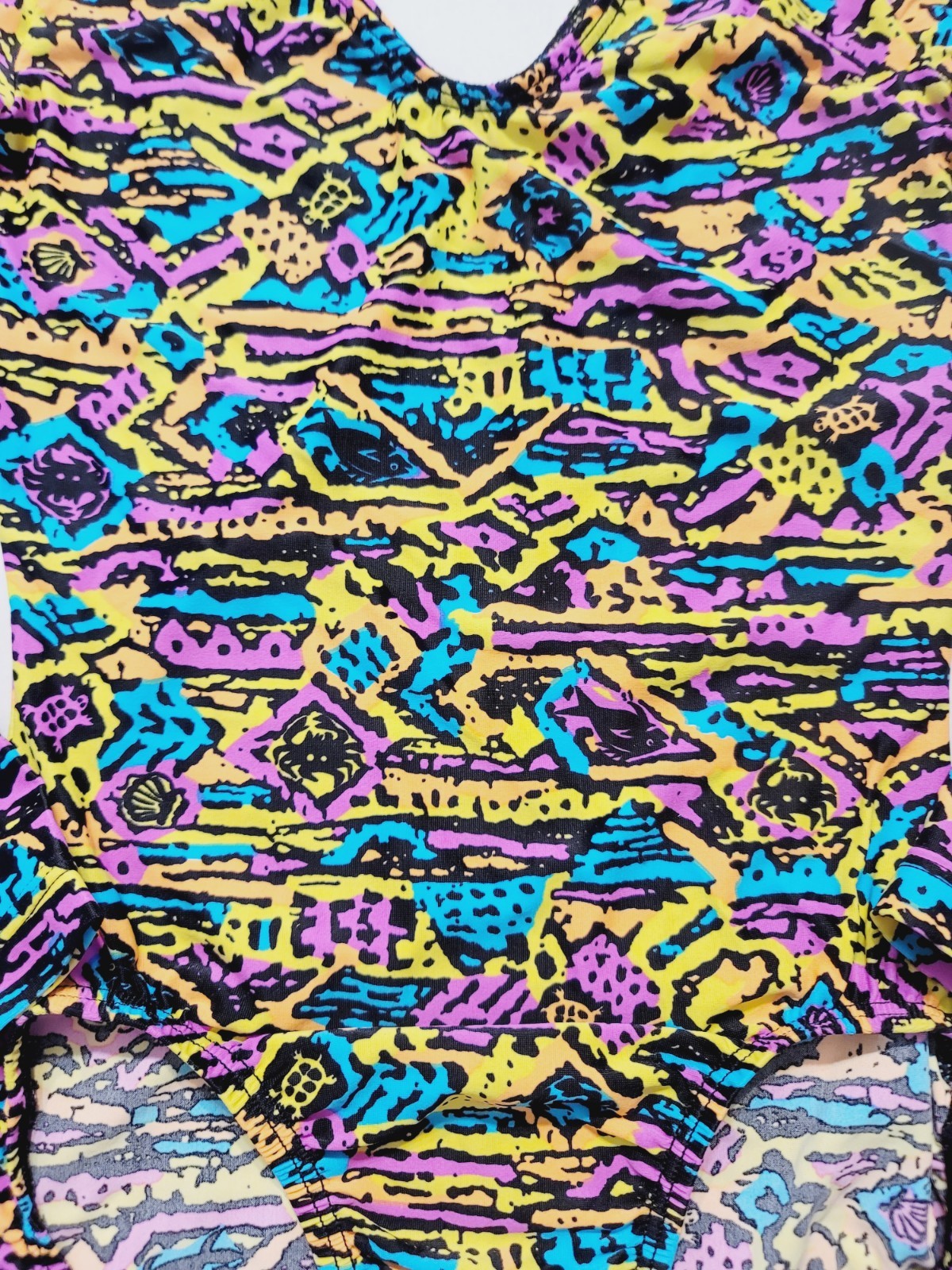 как выглядит GK Elite VTG 80s Oceanic Memphis Geometric Leotard Long Sleeve Size AM Adult M фото