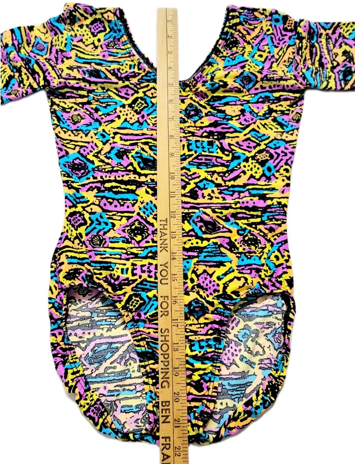 GK Elite VTG 80s Oceanic Memphis Geometric Leotard Long Sleeve Size AM Adult M