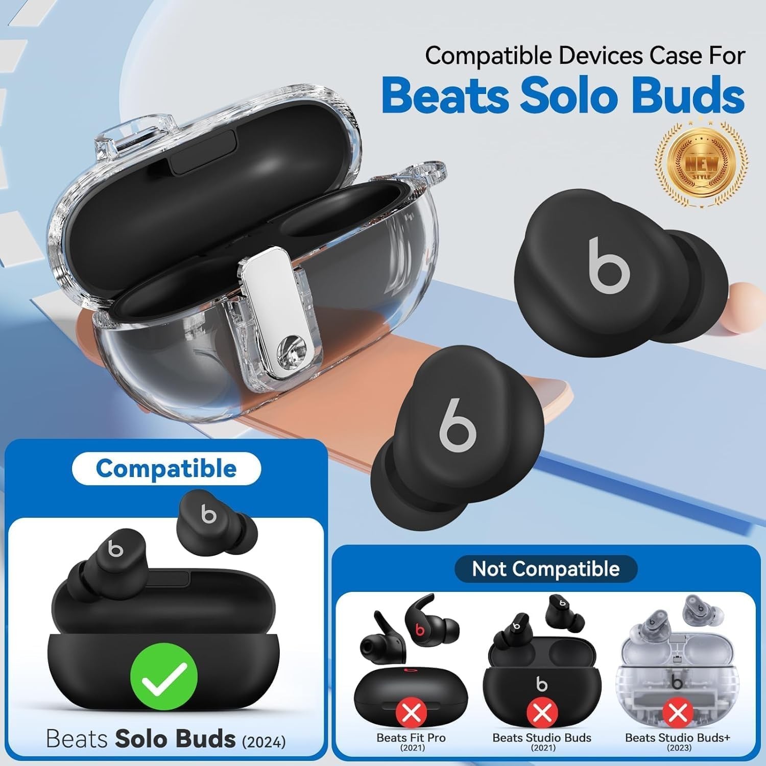 3-In-1 Secure Lock Case for Beats Solo Buds 2024 with Cleaning Kit Keychain,