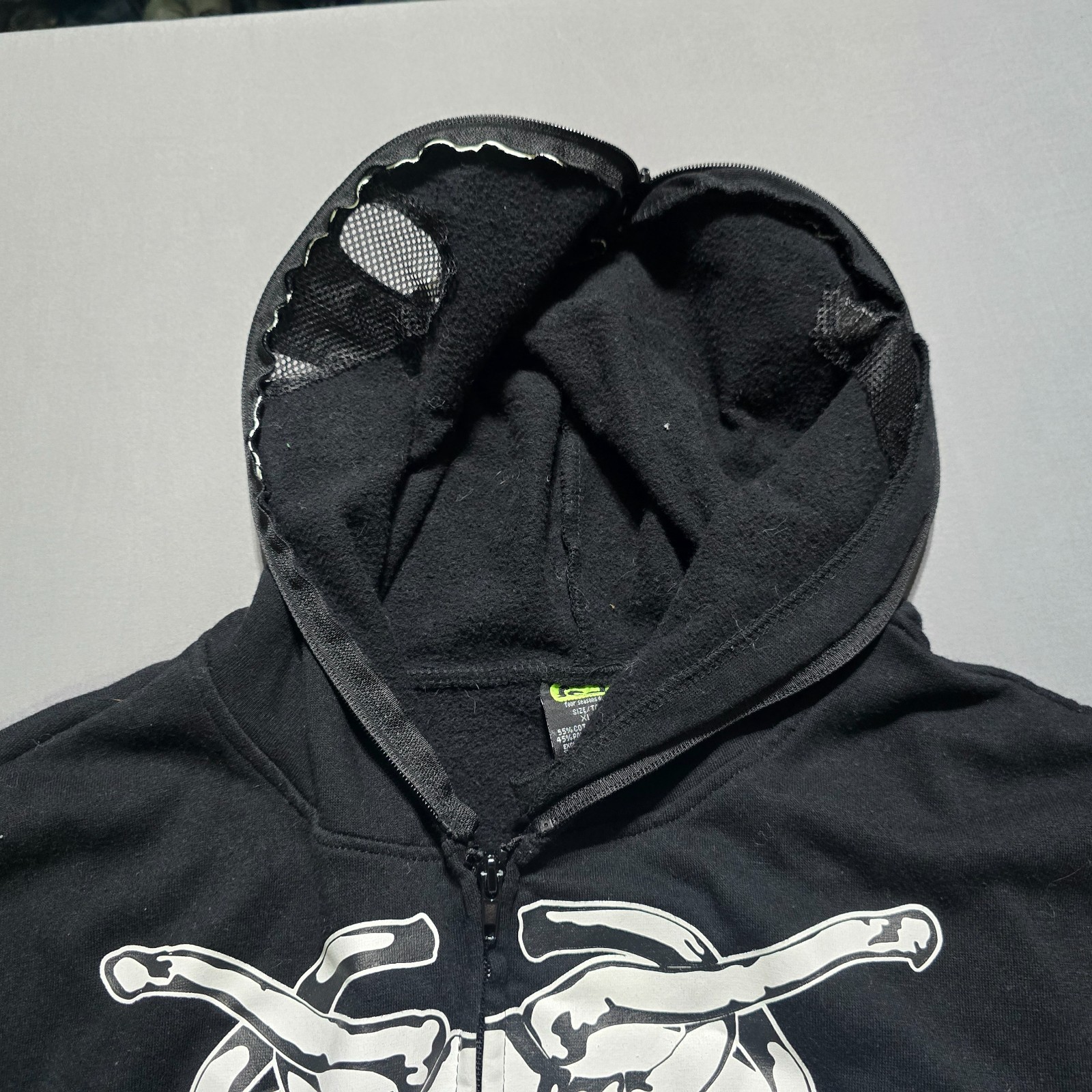 Mens XL Skeleton Halloween Costume Hooded Sweatshirt Hoodie Black White zip