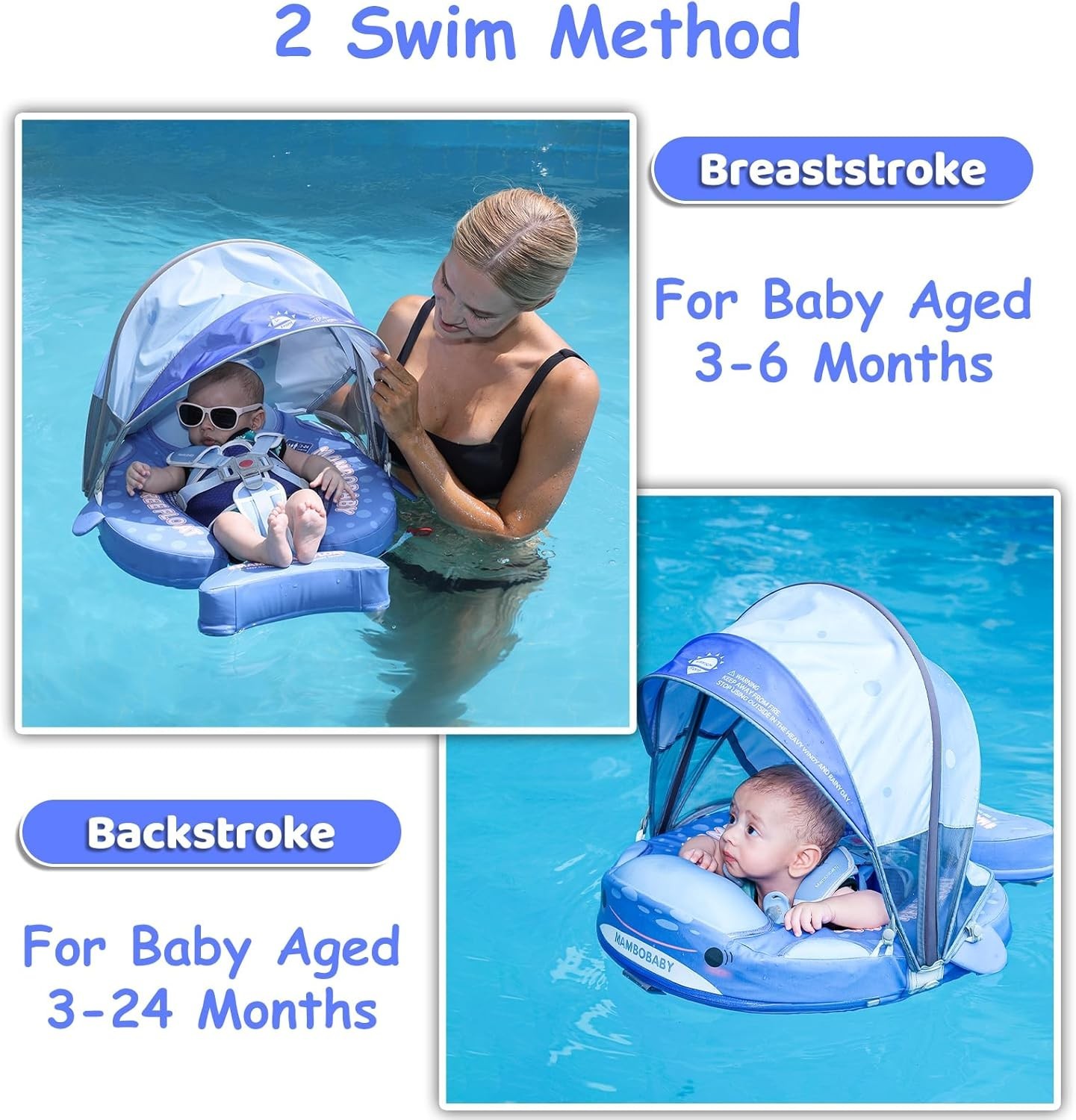 Mambobaby Baby Pool Float with Canopy Tail Baby Swim Float 3-24 Months