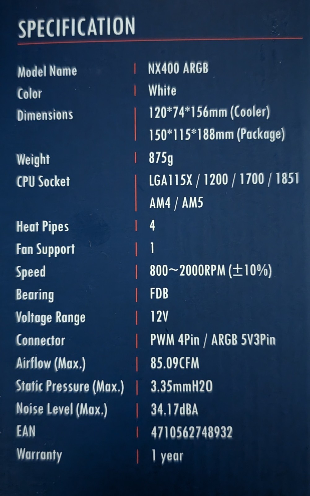 как выглядит MONTECH NX400 ARGB CPU Air Cooler New Sealed in Box фото